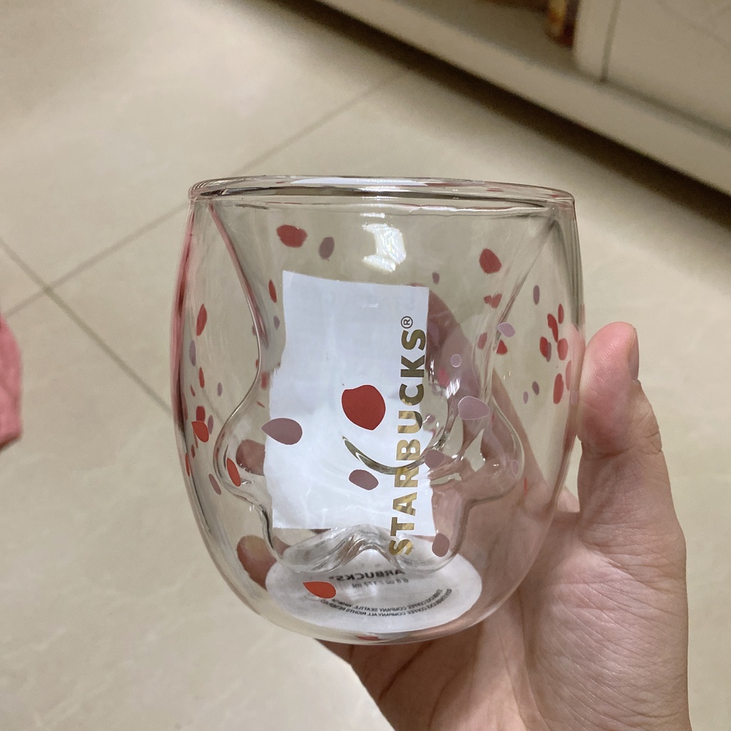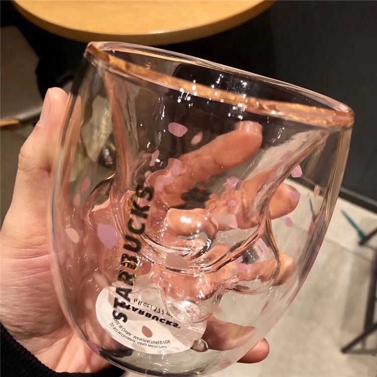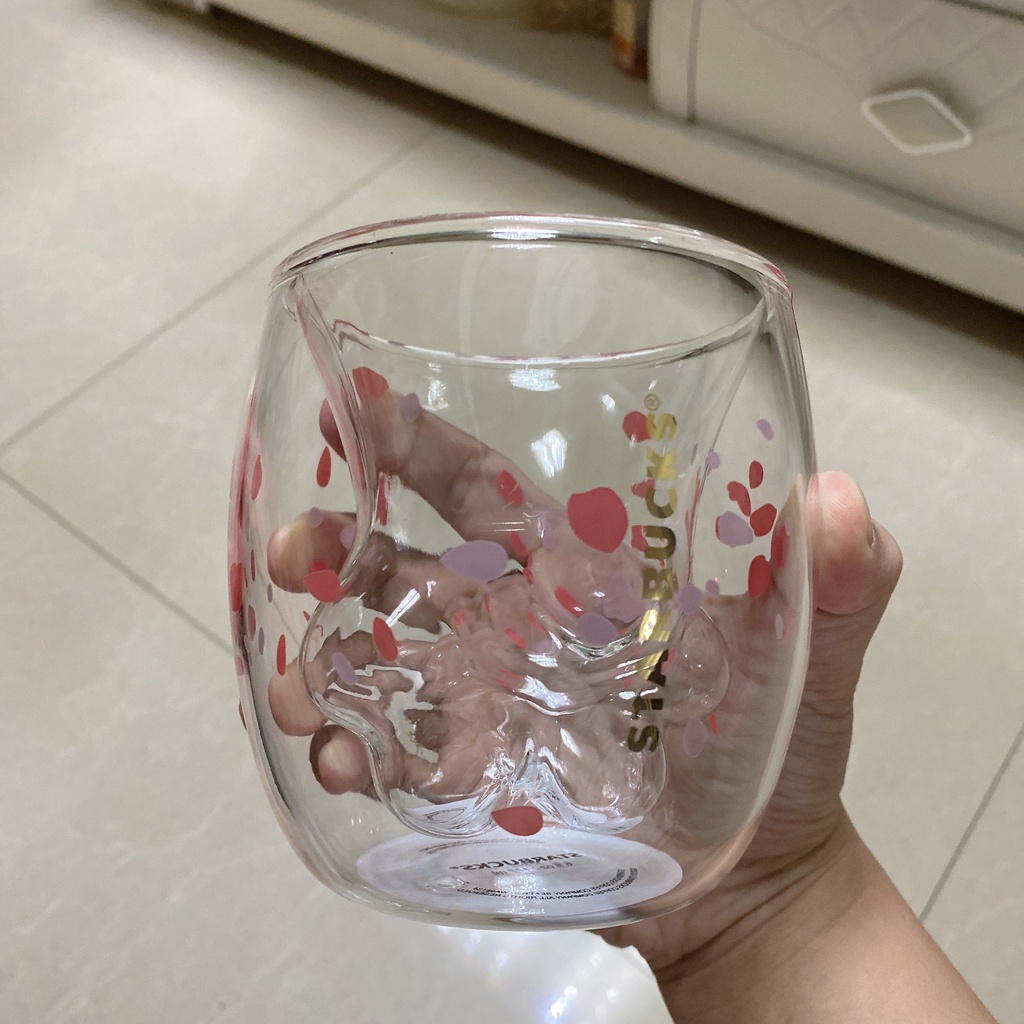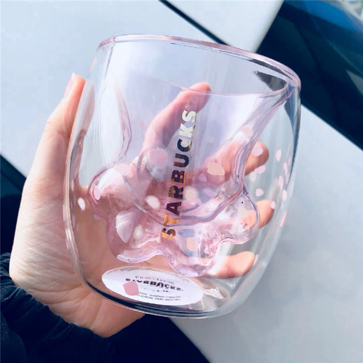 Starbucks Cat Paw Cup Pink Sakura Double Coffee Milk Wall Glass Mug Anniversary Christmas