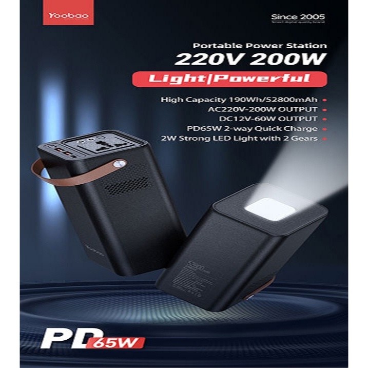 Yoobao EN200W-G2 52800mAh PD65W USB C Two- Way Quick Charge with 200W AC Output Power Station