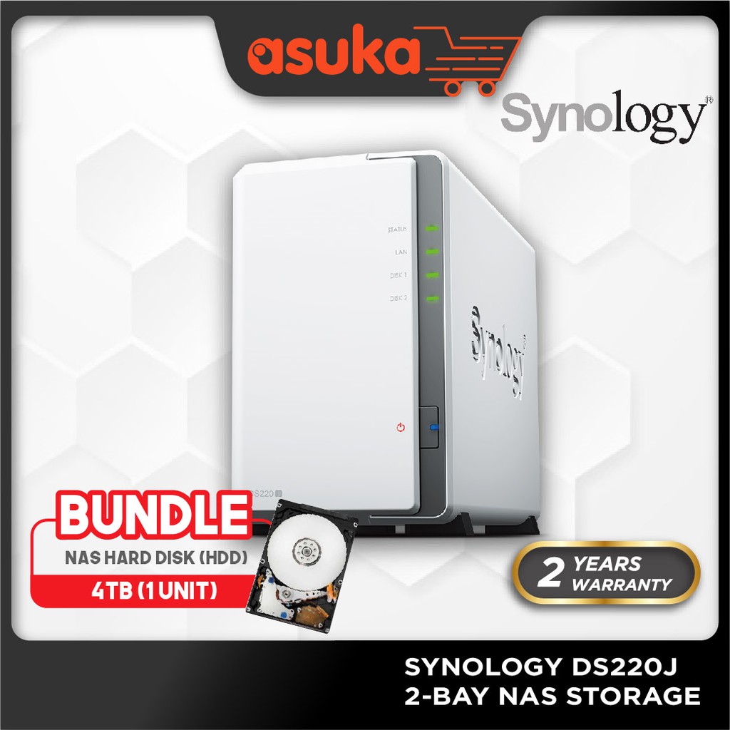 SYNOLOGY DS220J / DS223J 2-BAY NAS STORAGE (REALTEK RTD1296 QUAD CORE 1.4 GHZ, 512MB DDR4, 1 X 1GBE)