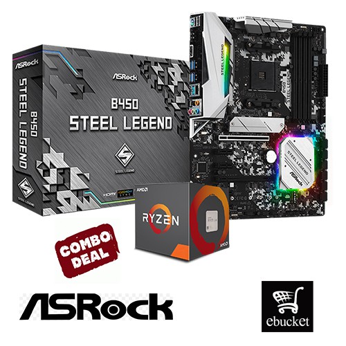 ASROCK B450 STEEL LEGEND Motherboard + AMD RYZEN CPU COMBO