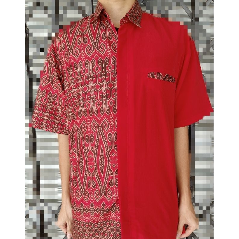 Men Short Sleeve Kemeja Borneo Motif Dewasa Lelaki Corak Tradisional