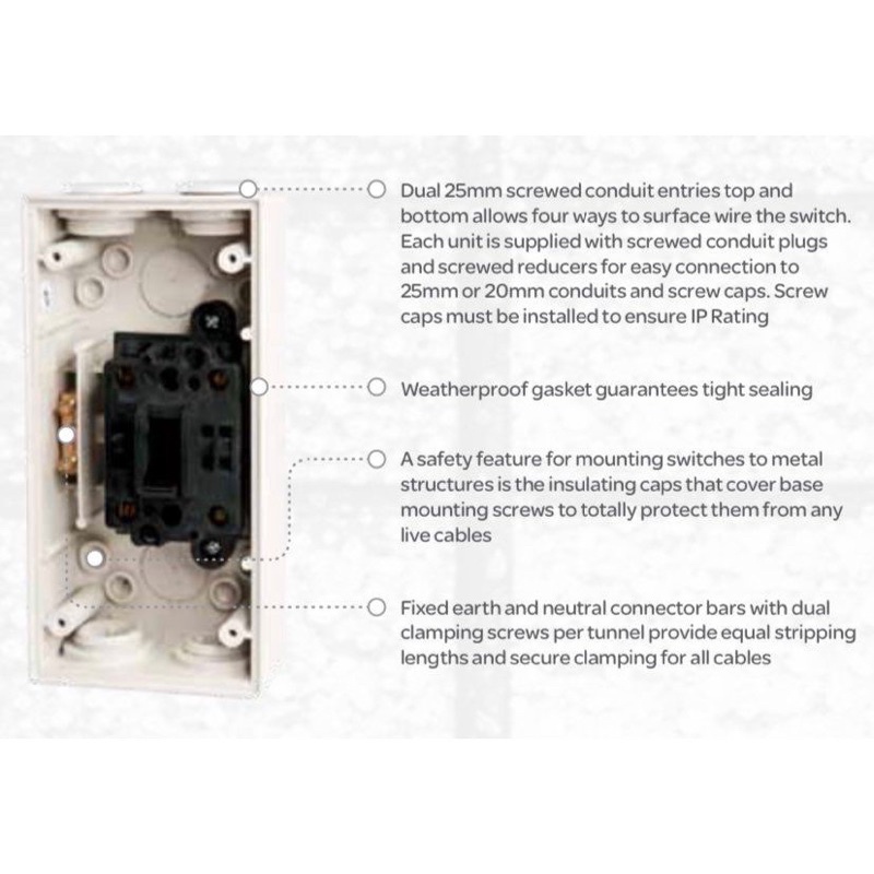 SCHNEIDER KAVACHA WHT 20A 35A 63A 440V 3 POLE ISOLATOR SWITCH IP66 ELEKTRIK