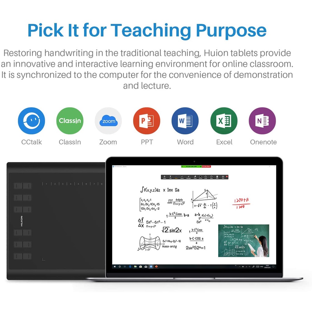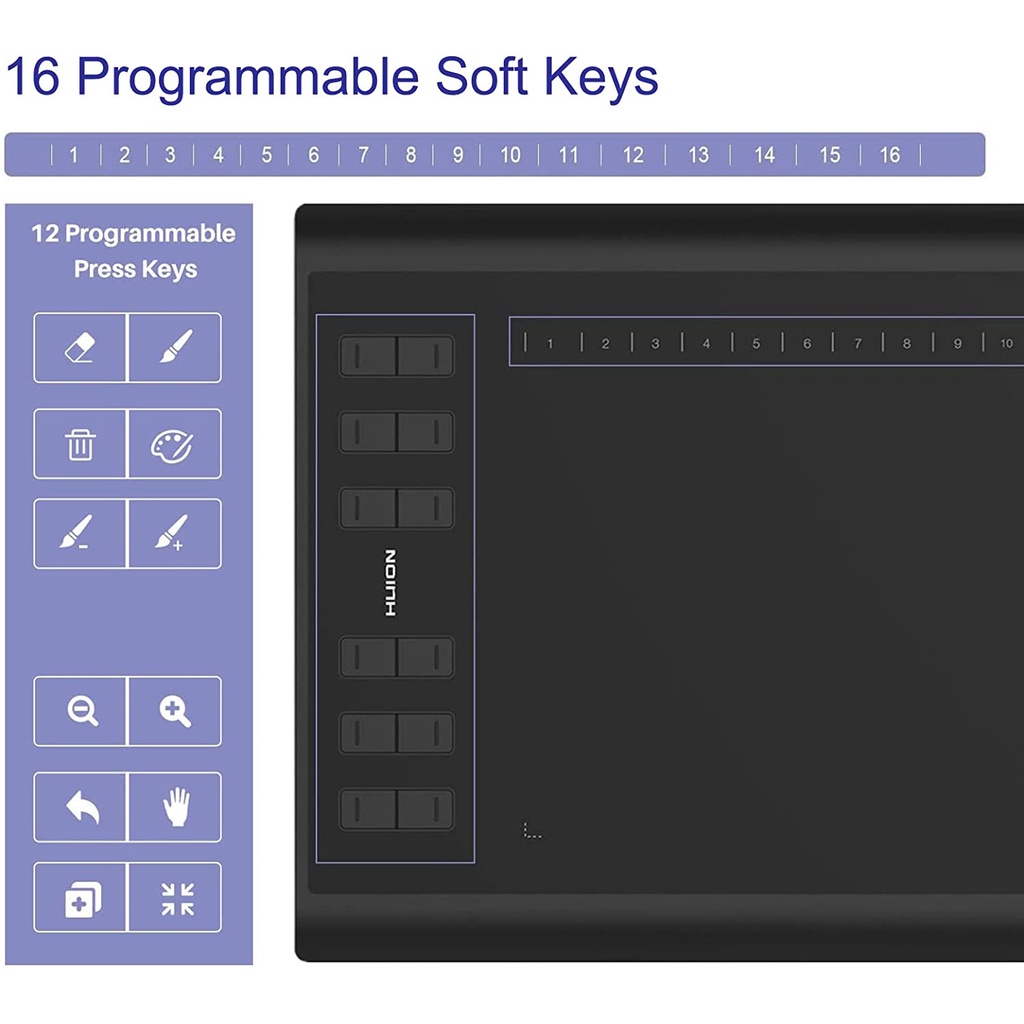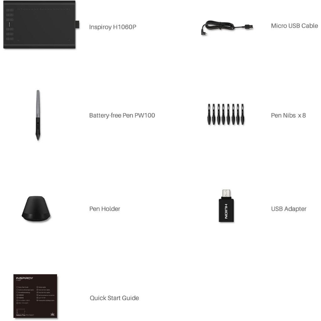 Huion H1060P Graphics Drawing Tablet Supports OSU Android Devices Battery-free Stylus for Drawing Online Working Ultrathin for Beginner, laptop Mac, Windows PC and Android