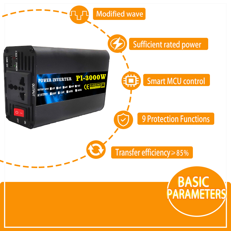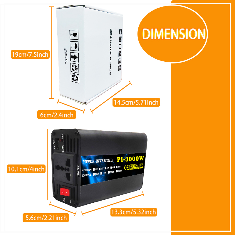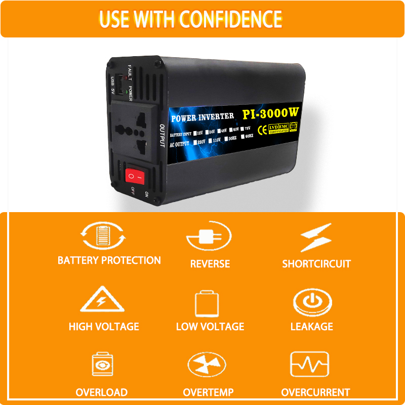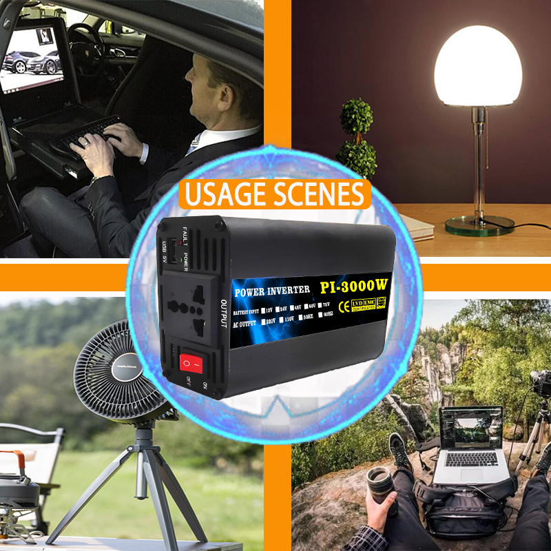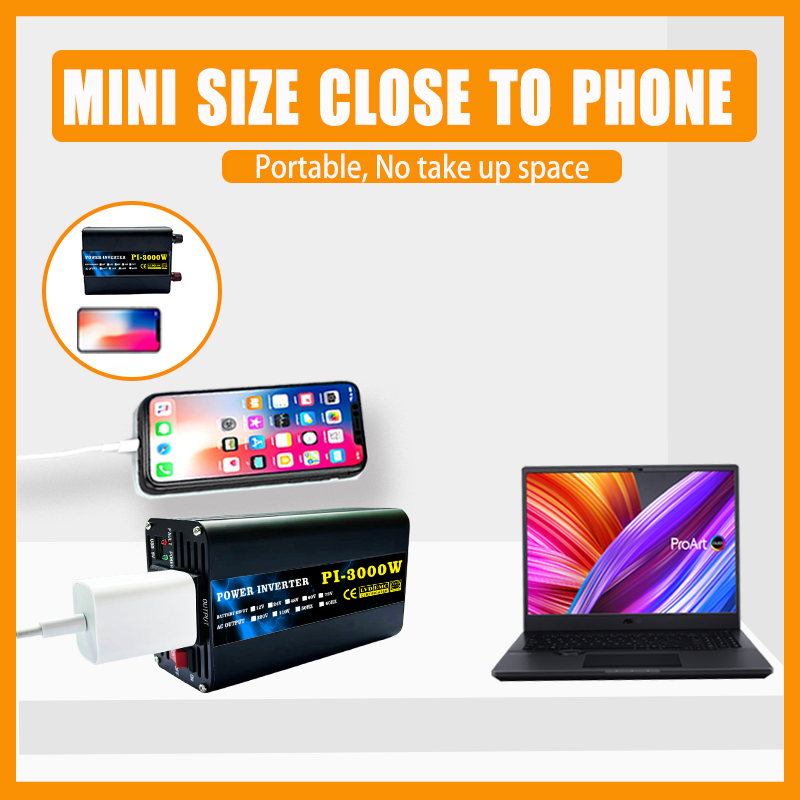 Power Inverter DC 12V/24V to AC 220V 3000W Improved Sine Wave Technology Lightweight & Portable Ideal for Home Appliances and Car Use