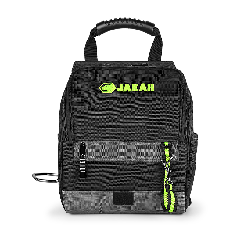Professional Electrician's Tool Pouch, 21 Pockets, Ergonomic Rubber Handle, Padded Shoulder Strap - Black/Green Beg Alat Elektrik Profesional, 21 Poket, Pemegang Getah Ergonomik, Tali Bahu Berpad Hitam Hijau