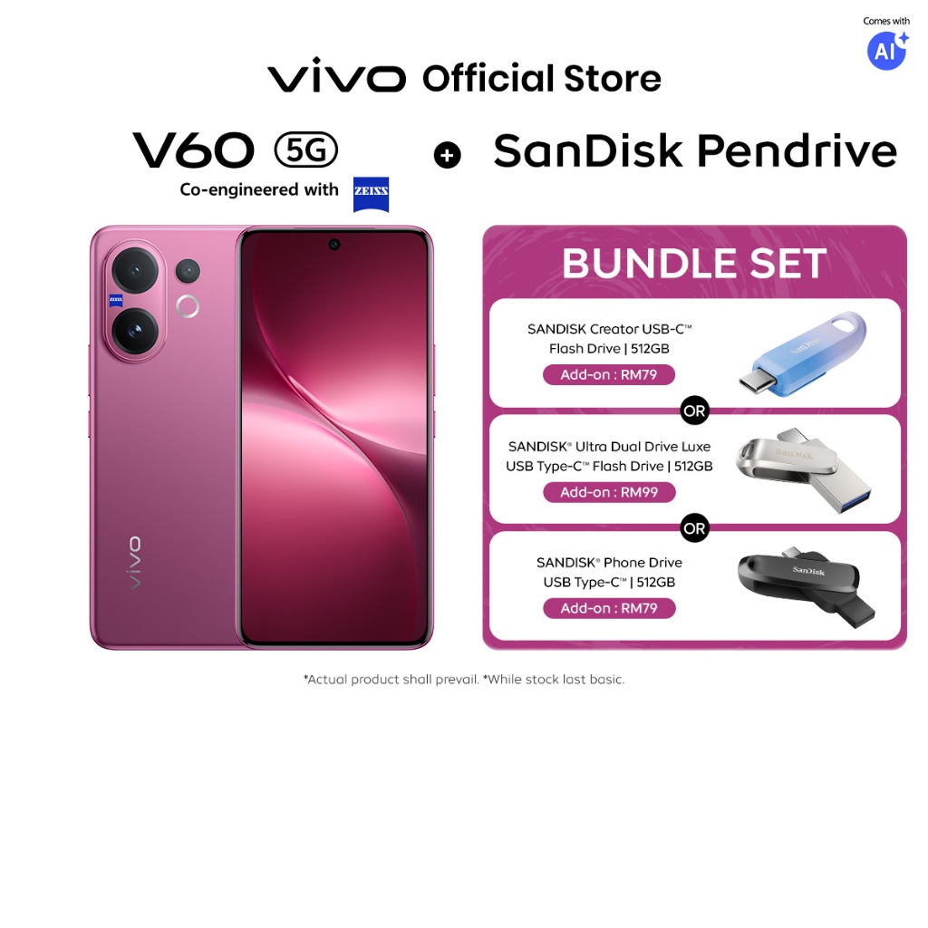 [vivo V60 x Sandisk] vivo V60 5G Series + Sandisk 512GB Flash Drive/Phone Drive (Bundle Promo)