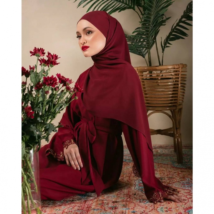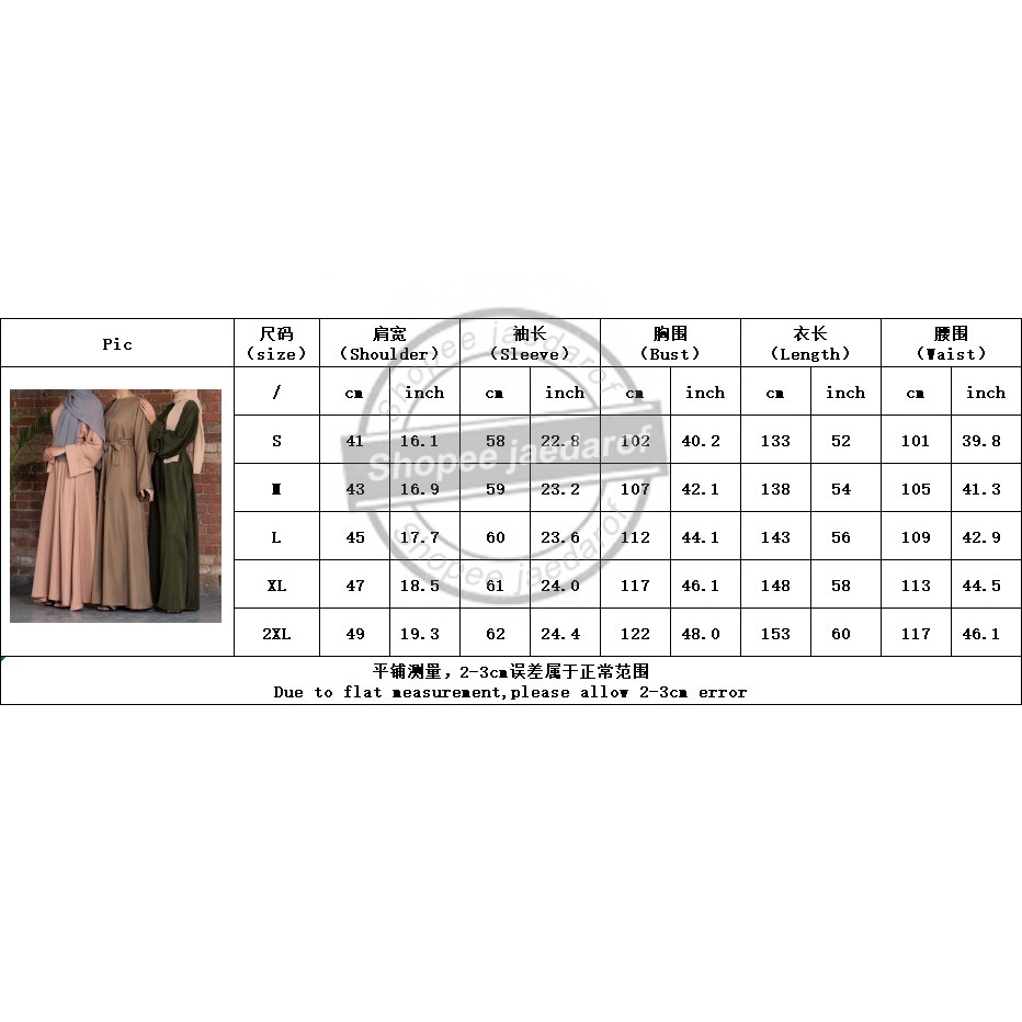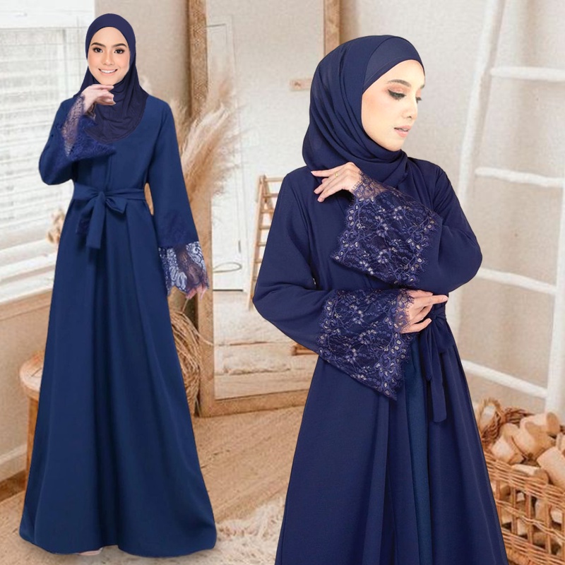 JUBAH MUSLIMAH LACE ABAYA PLAIN JUBAH wanita lengan panjang XXL XL L M S MAXI Dress Dubai plus-size belted Muslim dress