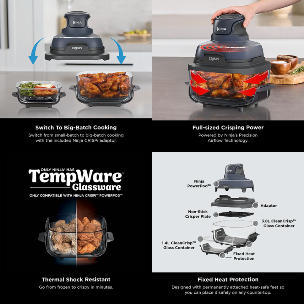 Ninja FN101 (Soft Sage) CRISPi 3.8L / 1.4L 4-in-1 Portable Glass Air Fryer | ESH