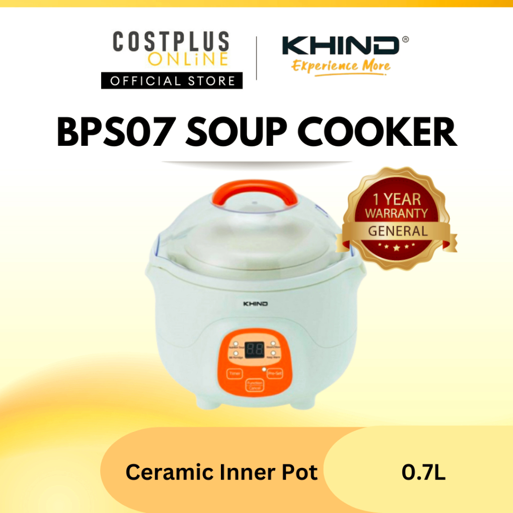 Khind BPS07 0.7L Ceramic Porridge Soup Cooker Rice Cooker Kitchen Periuk Nasi Kukus Pemanas Bubur