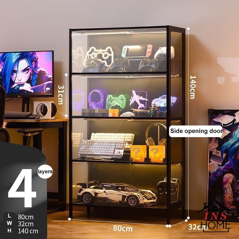 Acrylic Display Cabinet Black Figure Display Stand Storage Toy Ornaments Collection Cabinet Side Open