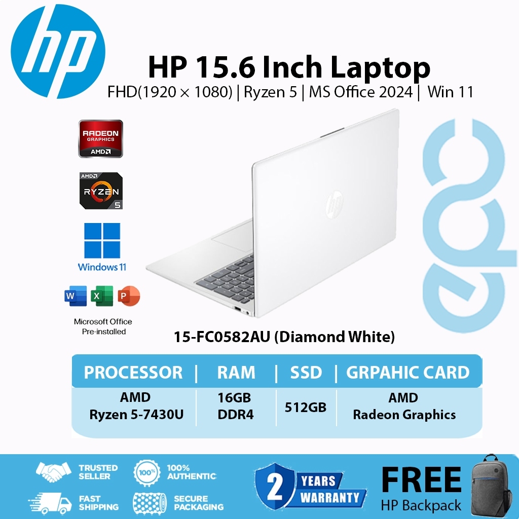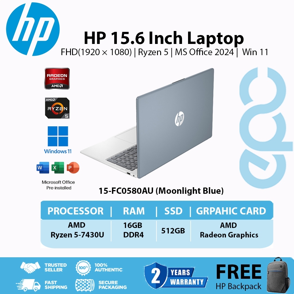 HP 15.6'' Laptop (15-FC0580AU/15-FC0582AU/15-FC0583AU) FHD | Ryzen 5 | MS Office 2024 | Win 11 | 2 Years Warranty