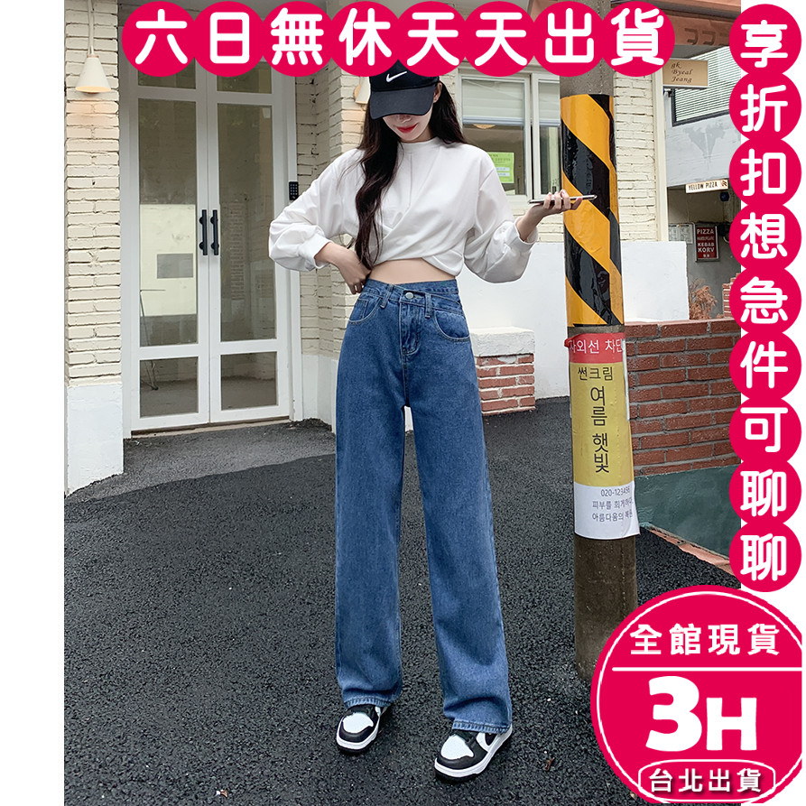 [Rika] Next Day Delivery Slimmer Look Straight Trousers Denim Loose Jeans High Waist Cross Korean GA2828