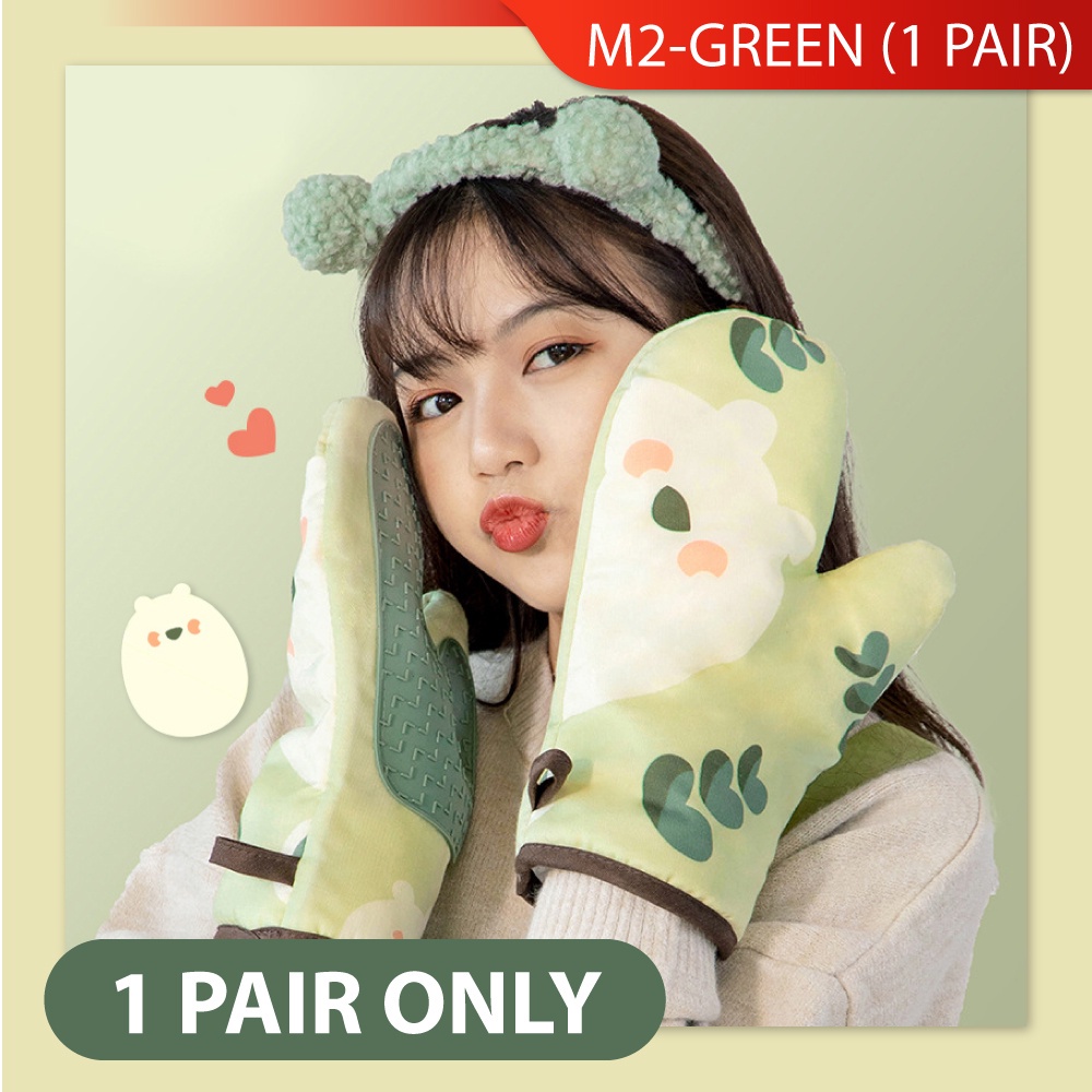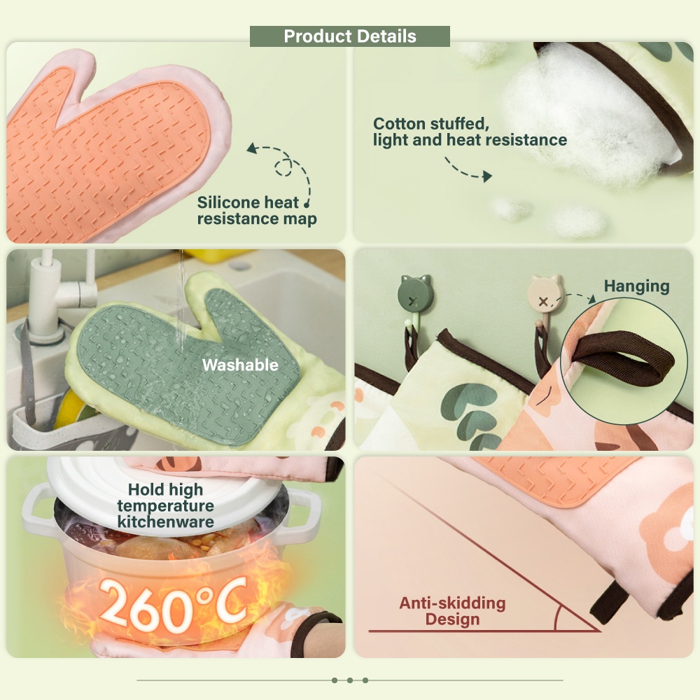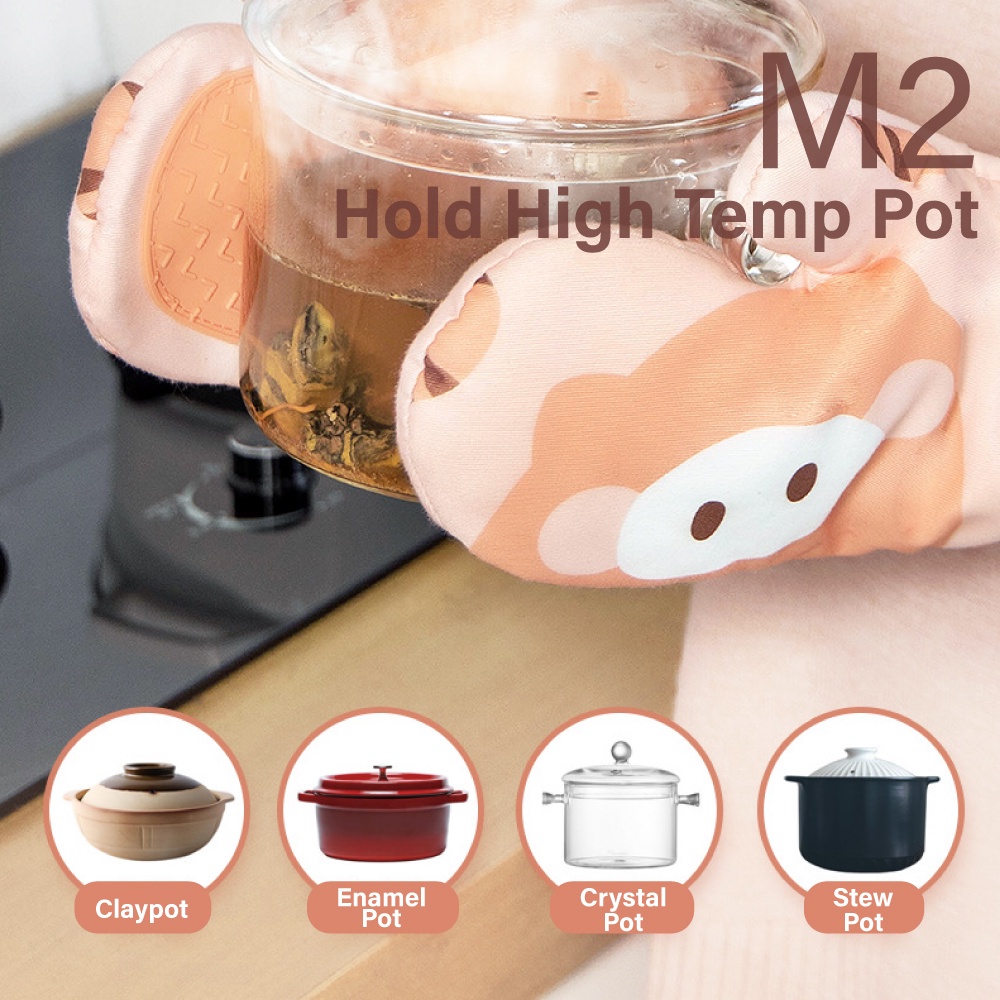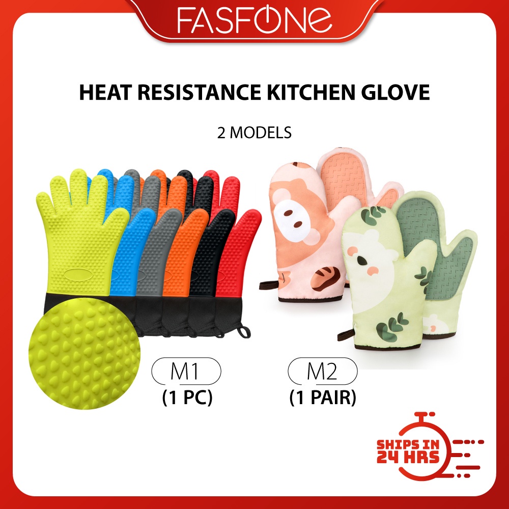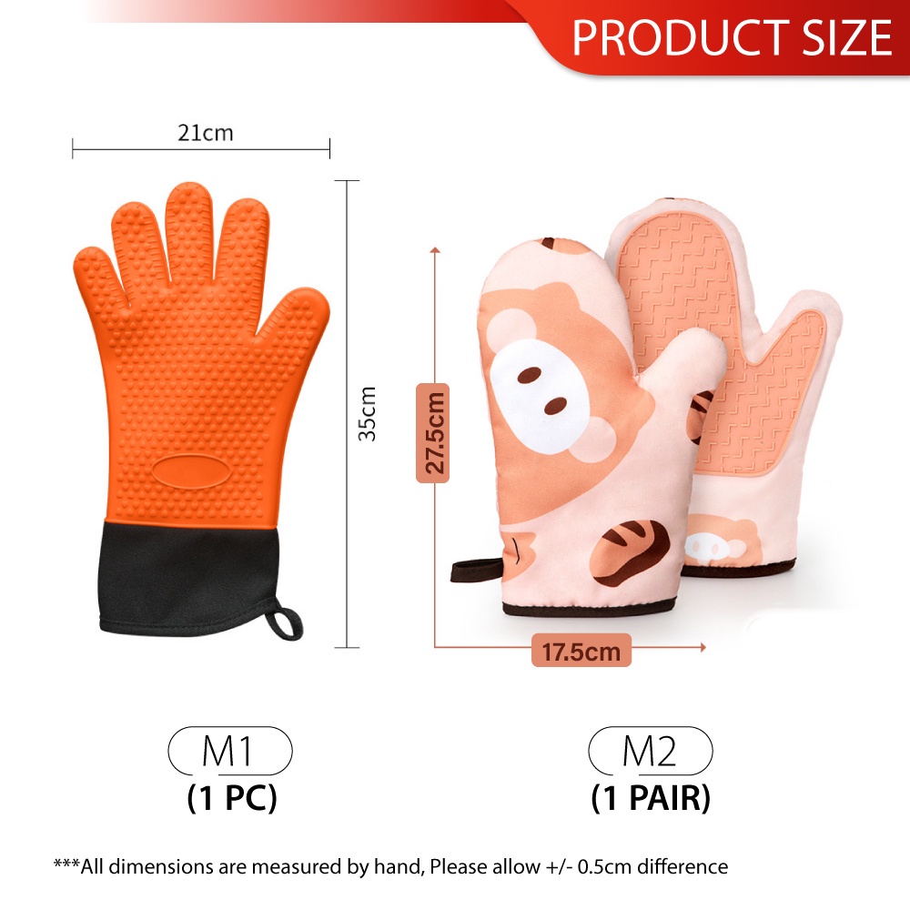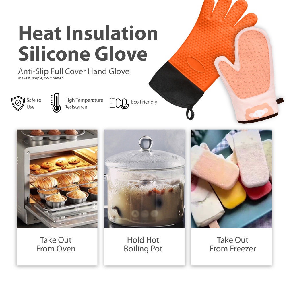 (Ready Stock) Silicone Long Sleeve Hand Glove Bakery Accessories Cotton Fabric Anti Slip Heat Resistant Glove