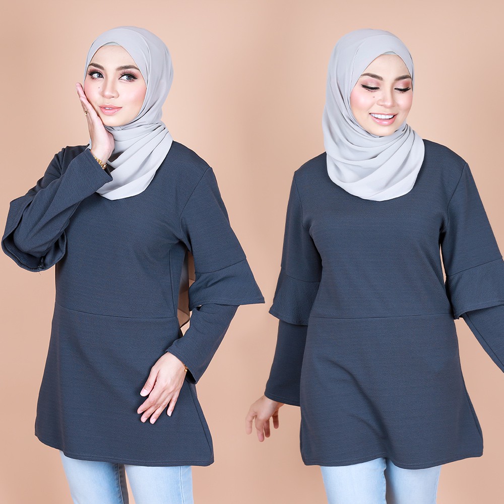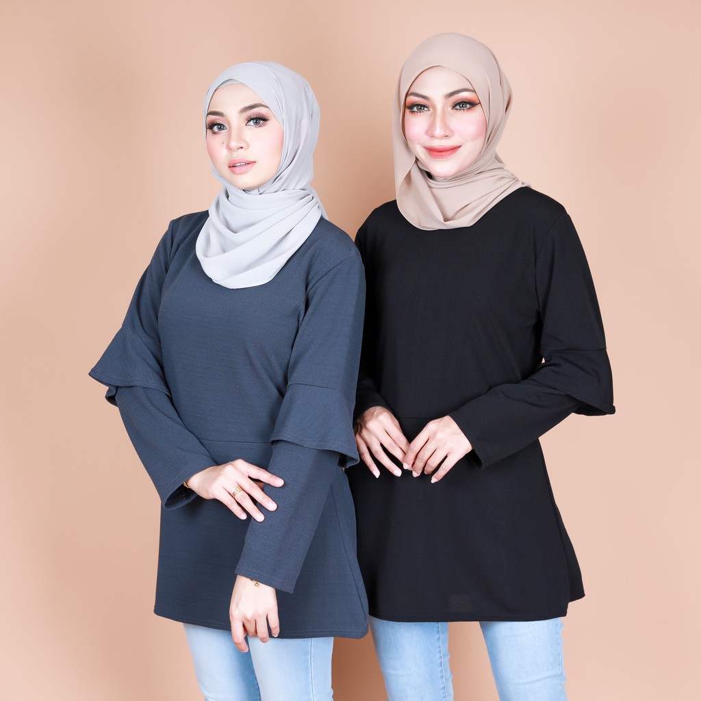 BLOUSE PLAIN DENGAN DUAL SLEEVES FISYAH