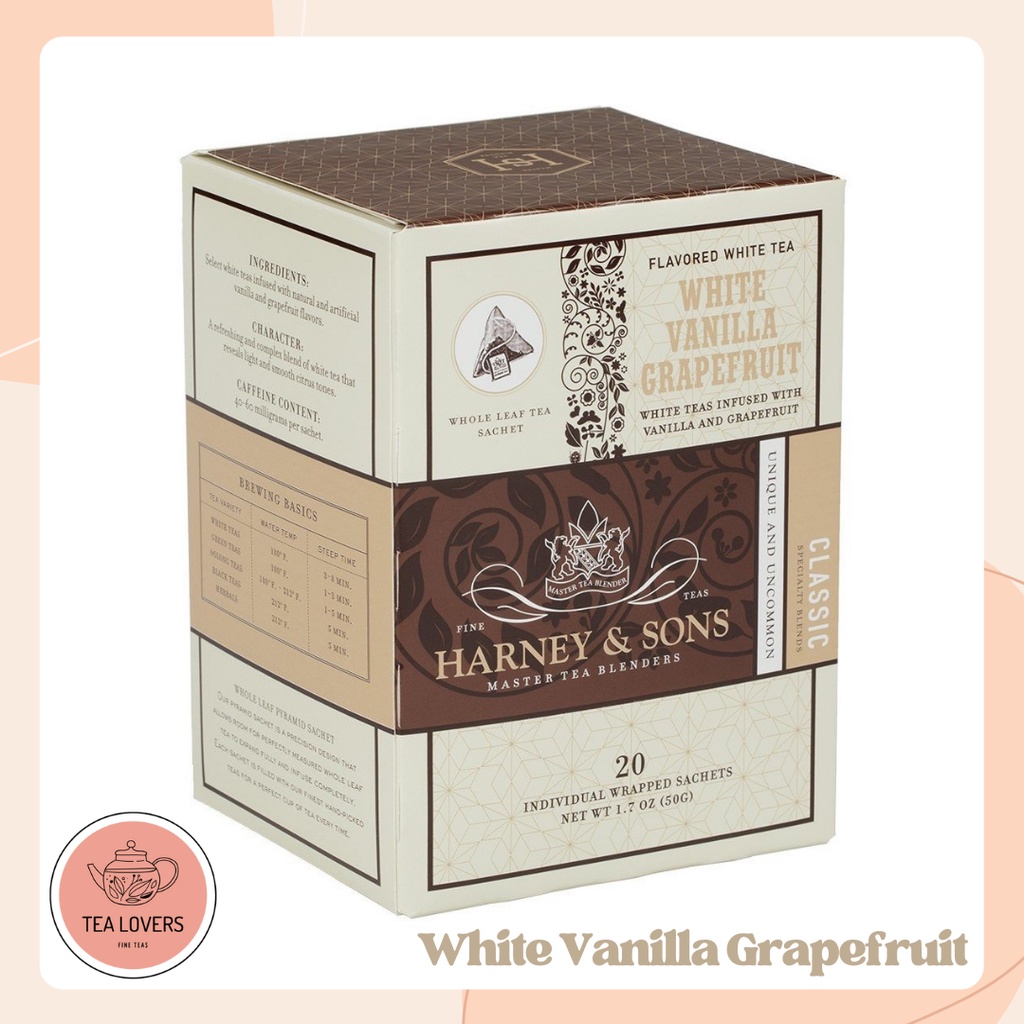 Harney & Sons Fine Tea, White Vanilla Grapefruit (20 sachets) Wrapped Silken Sachets