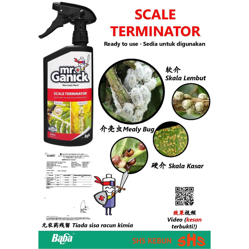 Mealybug Spray Racun Serangga Organik Organic Pesticide Scale Terminator Bena 虫药 500 ml SHS Kebun