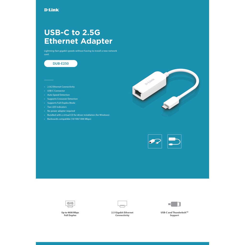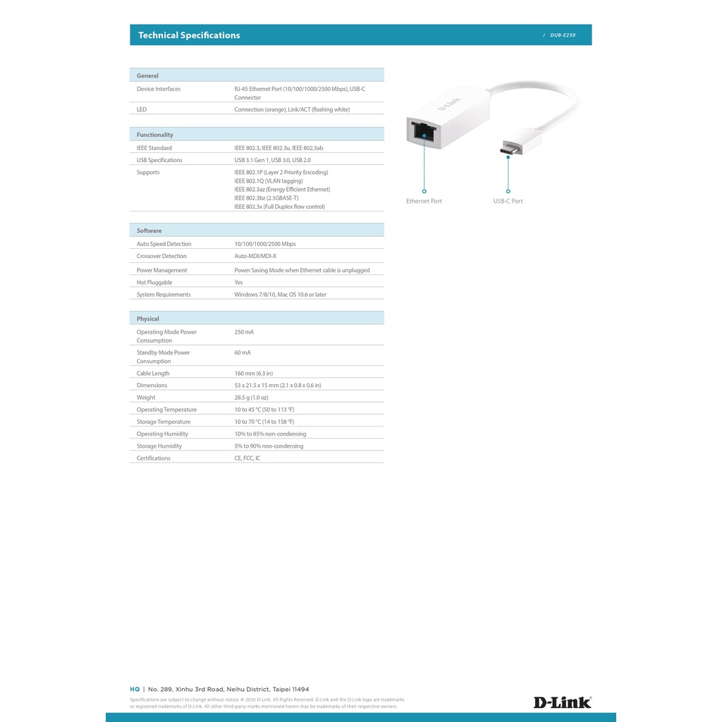 D-Link USB Type C to 2.5G Ethernet Adapter DUB-E250