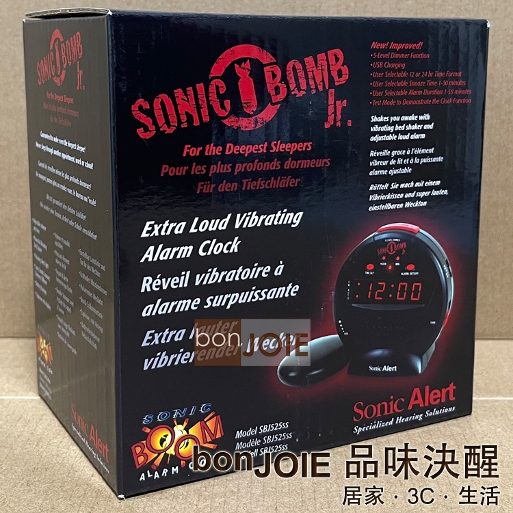 Sonic Alert SBJ525SS Vibrating Alarm Clock With Vibrator Boom Bomb Jr.