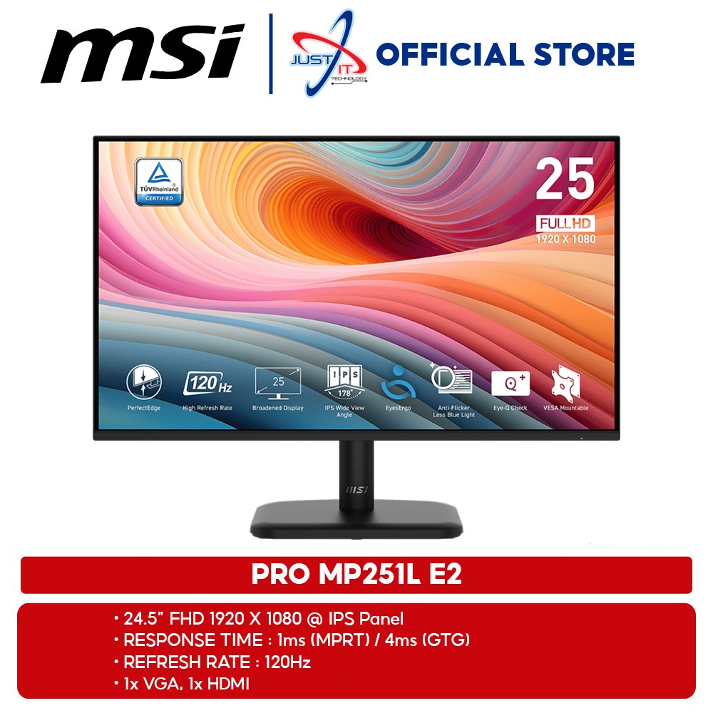 MSI PRO MP251L E2 (120Hz) / MP251 E14L (144Hz) 24.5" MONITOR (24.5" IPS FHD / 1Ms / VGA + HD MI)