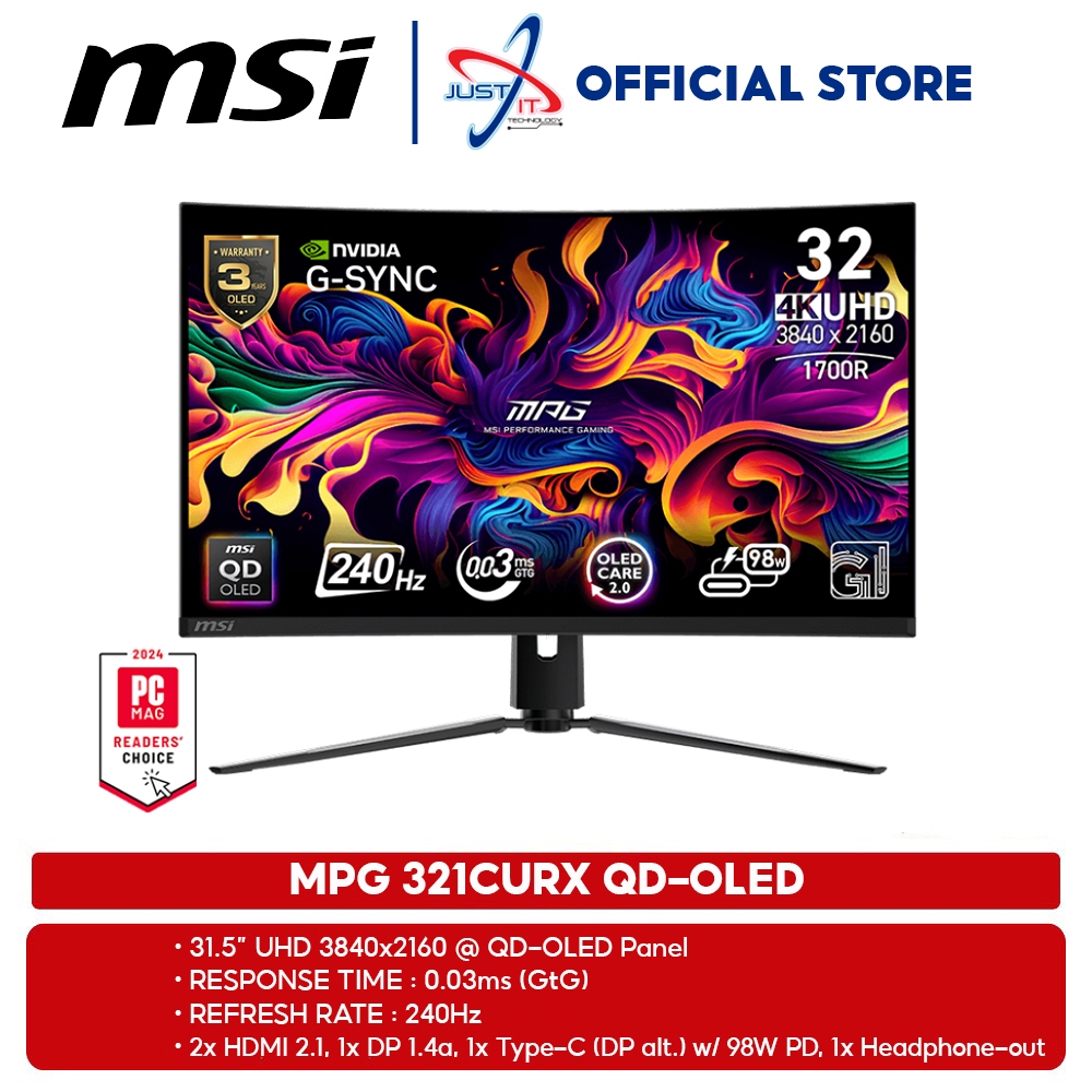 MSI MPG 321CURX QD-OLED 31.5" CURVED GAMING MONITOR (31.5" QD-OLED UHD /0.03MS/240Hz/G-SYNC COMAPTIBLE/HD MI+DP+TYPE C )