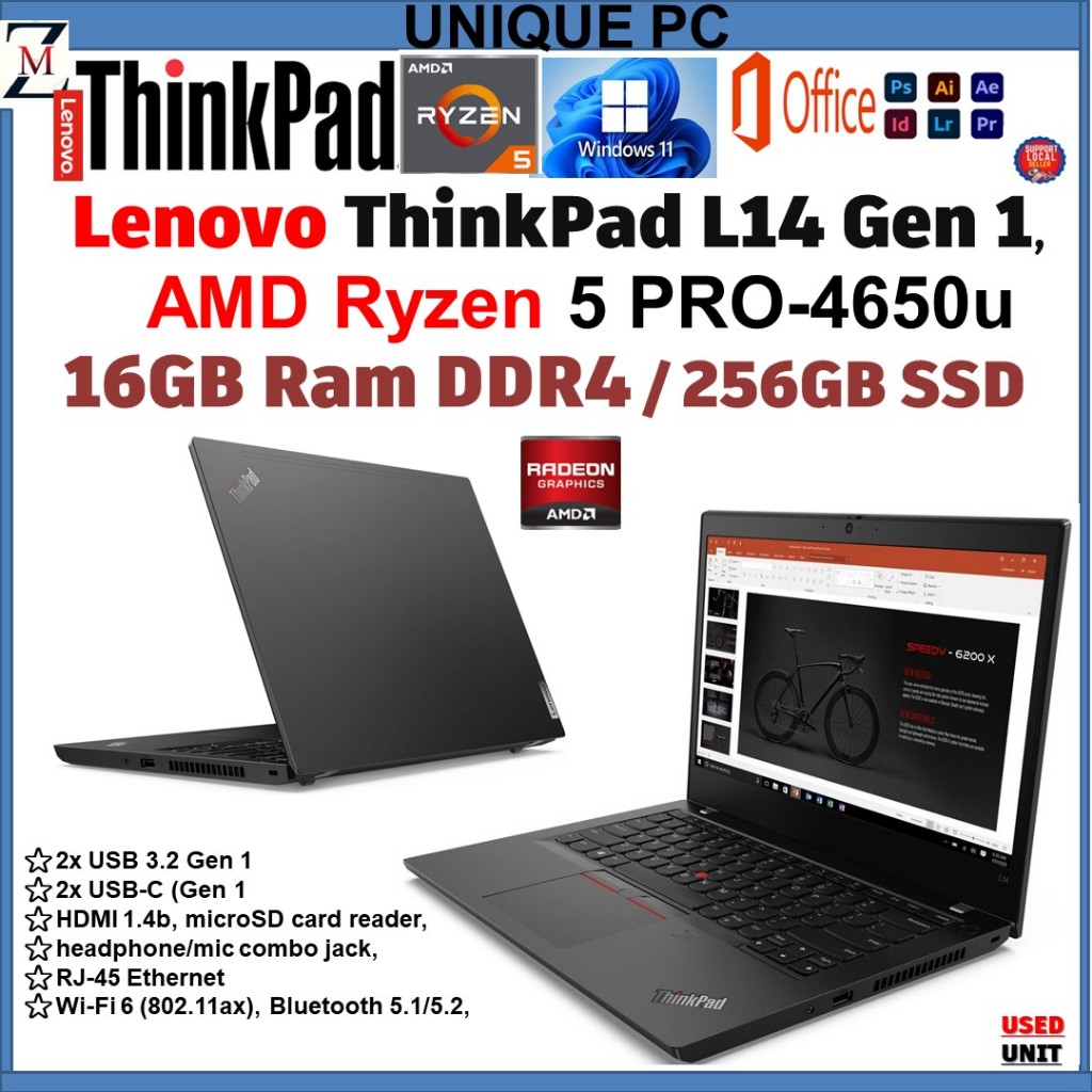 LENOVO THINKPAD T14 Gen 1 GAMING LAPTOP Ryzen 5 PRO-4650U, 16GB DDR4 RAM 1TB NVME SSD 14-inch FHD IPS Display