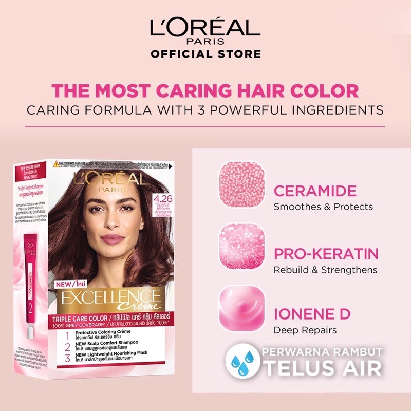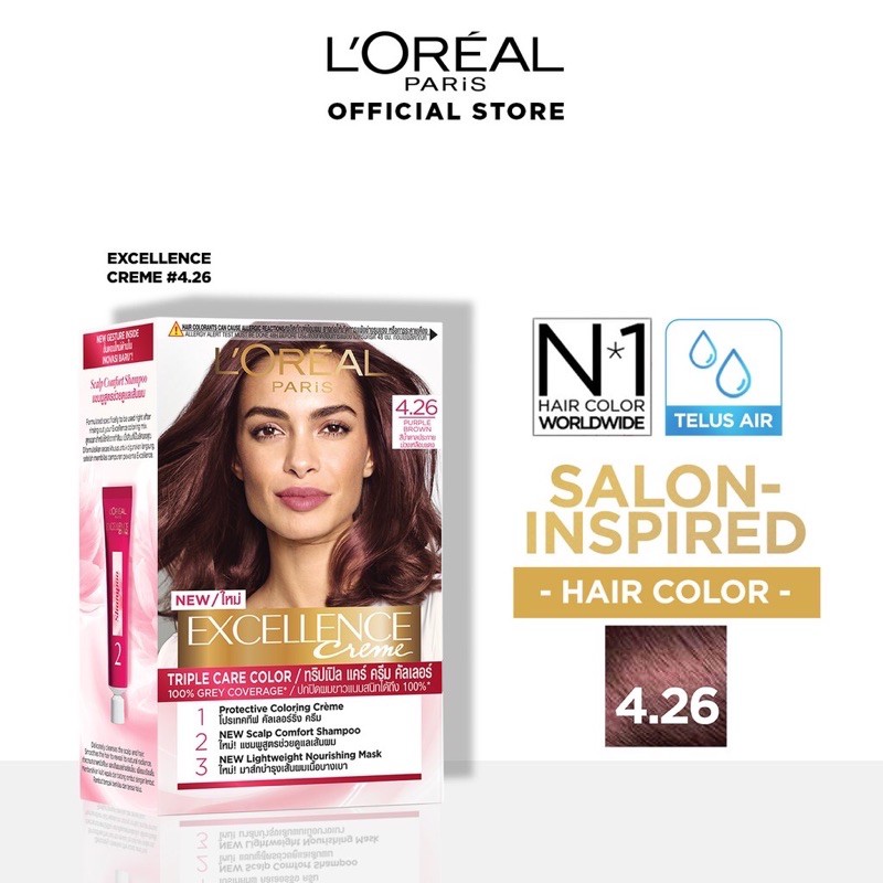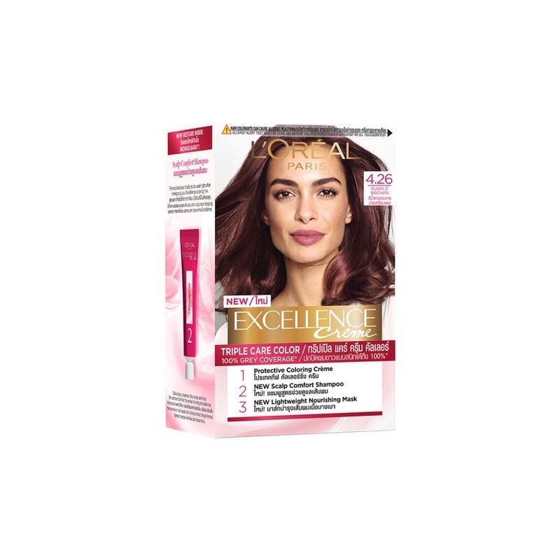 L'Oreal Paris Excellence Creme Triple Care Hair Color - #4.26 Purple Brown, Water Permeable