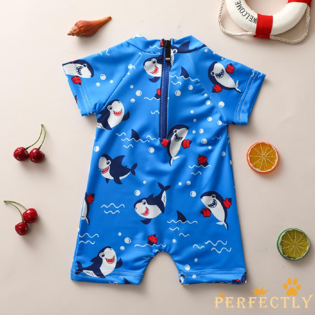 PFT-Summer Toddler Kids Baby Boys Swimsuit Shark Print Short Sleeve Romper Beach Bathing Suit 0-3Y