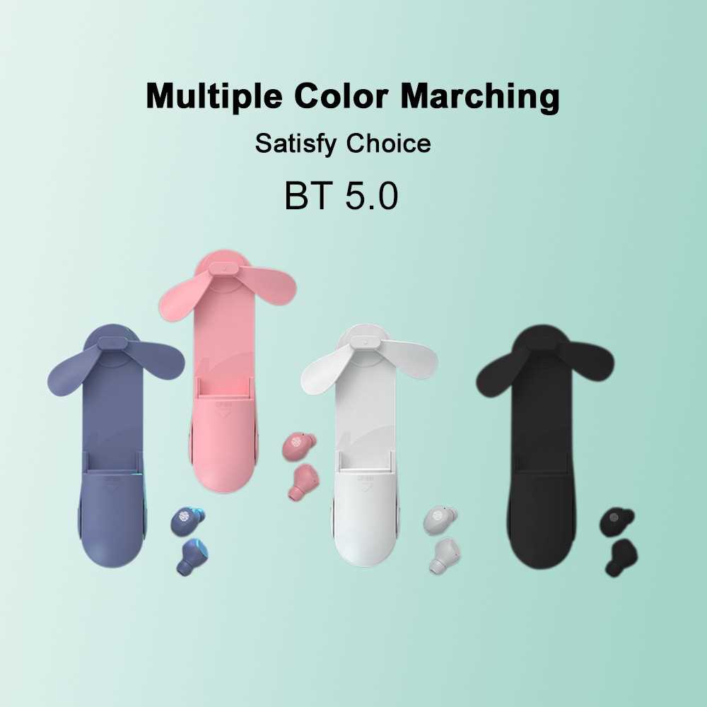 True Wireless Bluetooth 5.0 Earbuds with Mini Fan Flashlight TWS Earphones in-Ear with Charging Case Multifunctional BT
