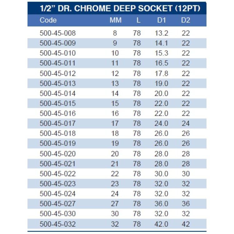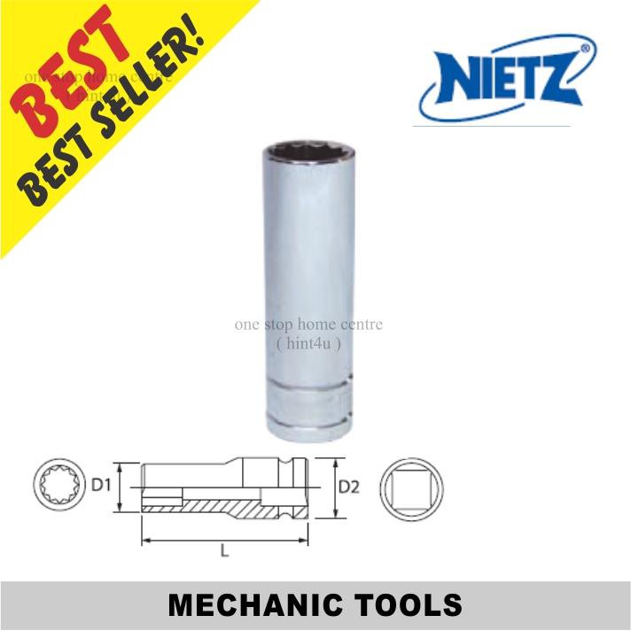 NIETZ 1/2” DR.Chrome Deep Socket (12pt) 16mm-32mm (500-45)