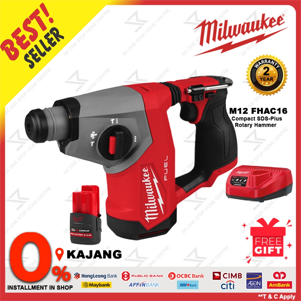 MILWAUKEE Combo M12 RED STRIKE! Brushless Cordless 16MM Compact SDS-Plus Rotary Hammer/13MM Percussion Drill/ 2.5 5.0AH