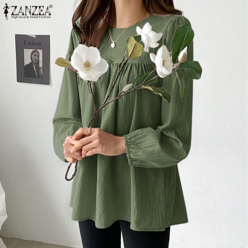 ZANZEA Women Korean Casual Loose Long Sleeve Square Neck Swing Solid Blouse
