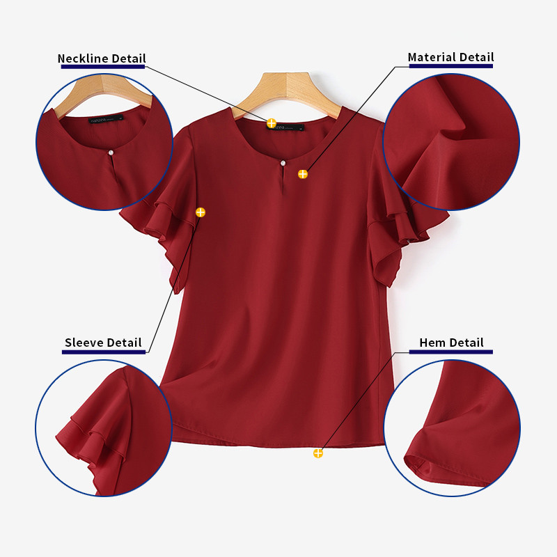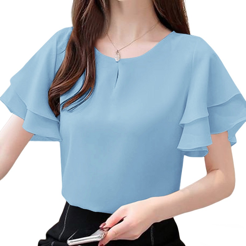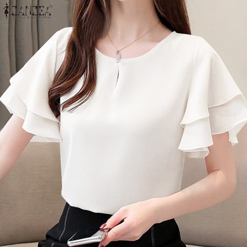 ZANZEA Women Korean O-Neck Button Double Layer Ruffle Short Sleeve Blouses