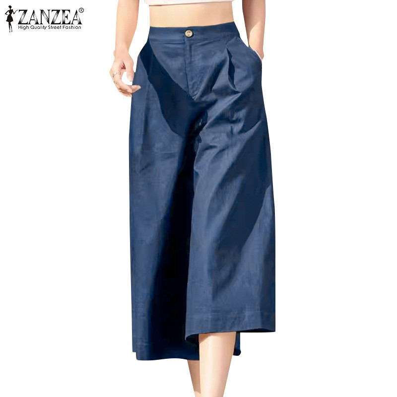 ZANZEA Women Korean Fashion Simple Solid Color Loose Wide Leg Pants