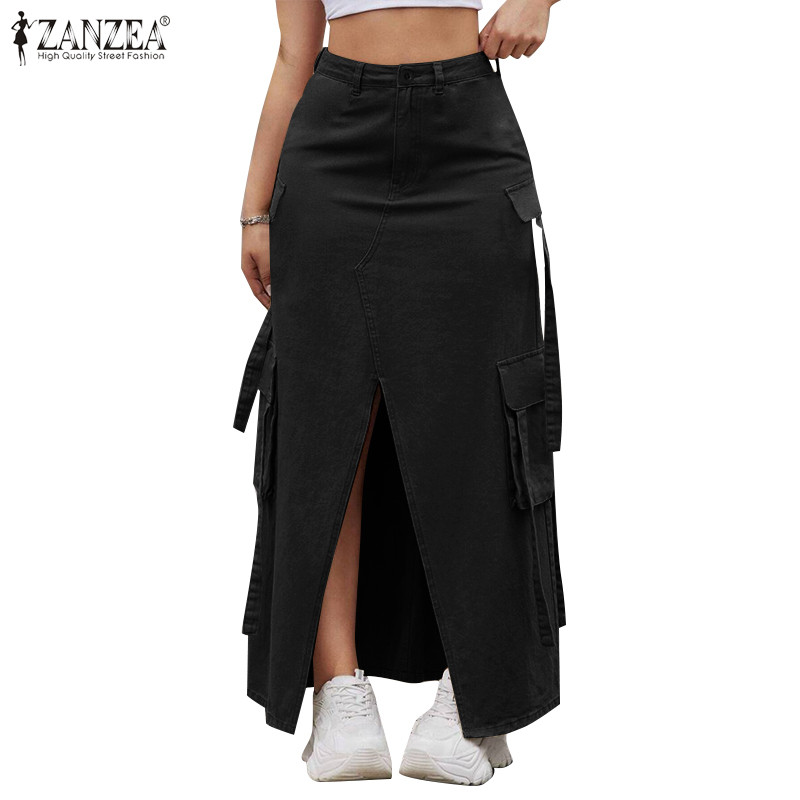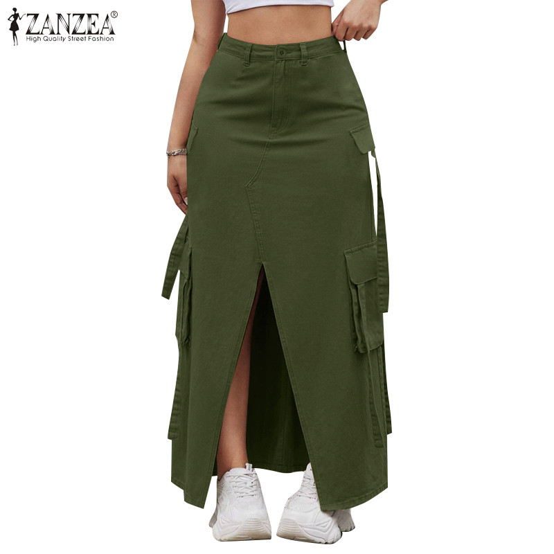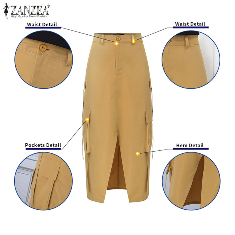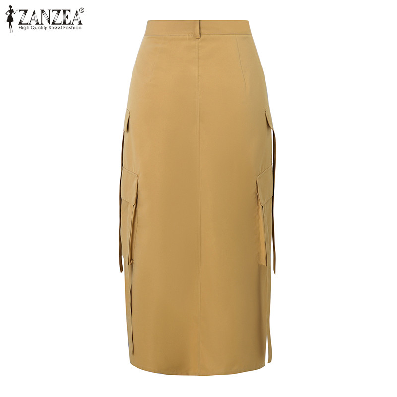 ZANZEA Women Fashion Solid High Waist With Pockets Patchwork Straight Skirt