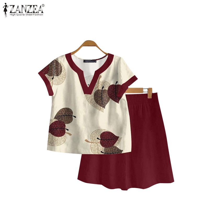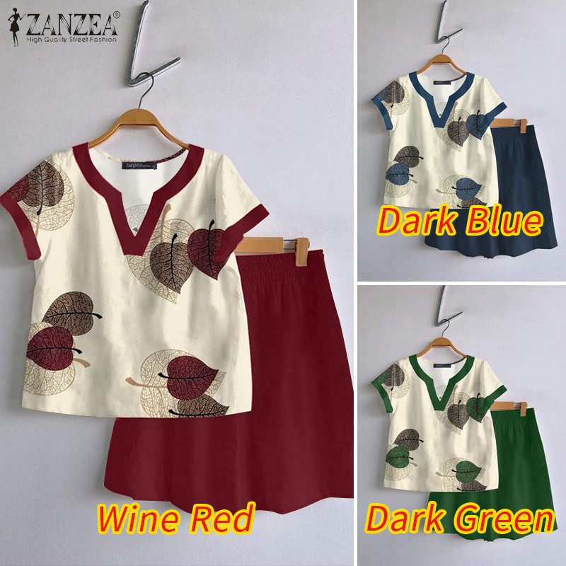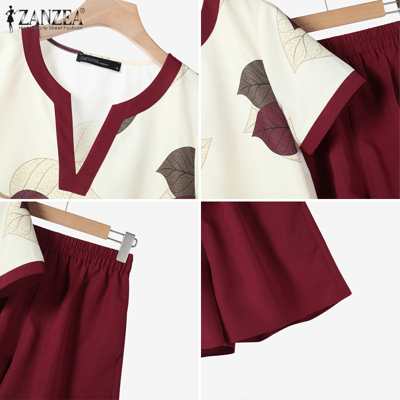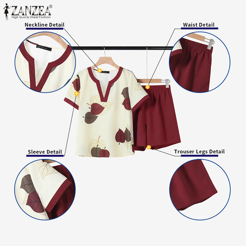 ZANZEA Women Korean Fashion V Neck Short Sleeve Printing Tops+ Shorts Sets
