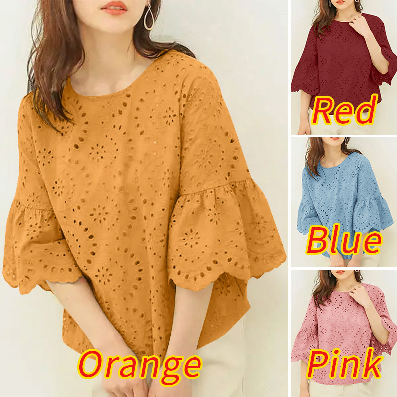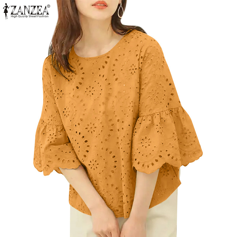 ZANZEA Women Korean Daily Lace Lace Skeleton Embroidered Petal Sleeve Blouse