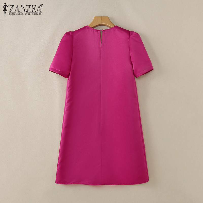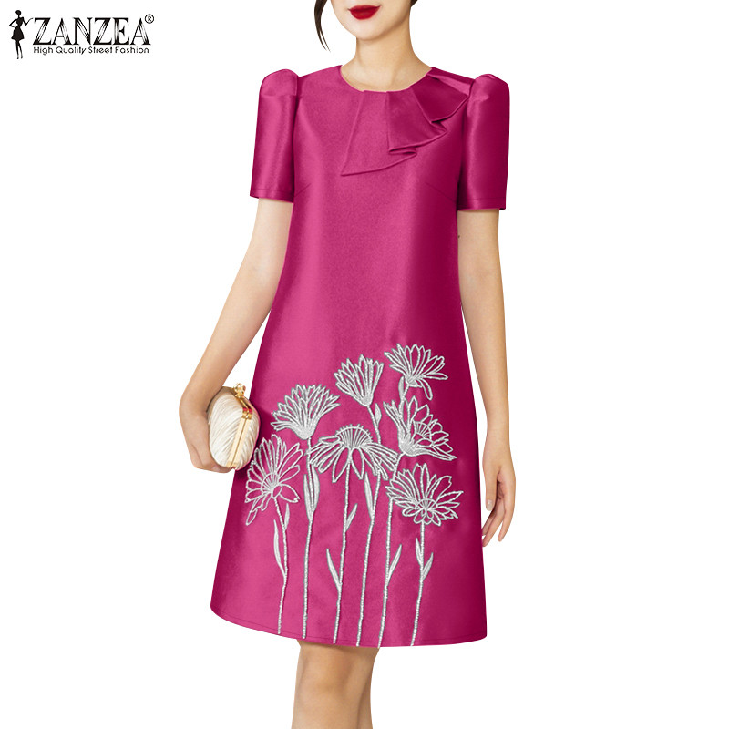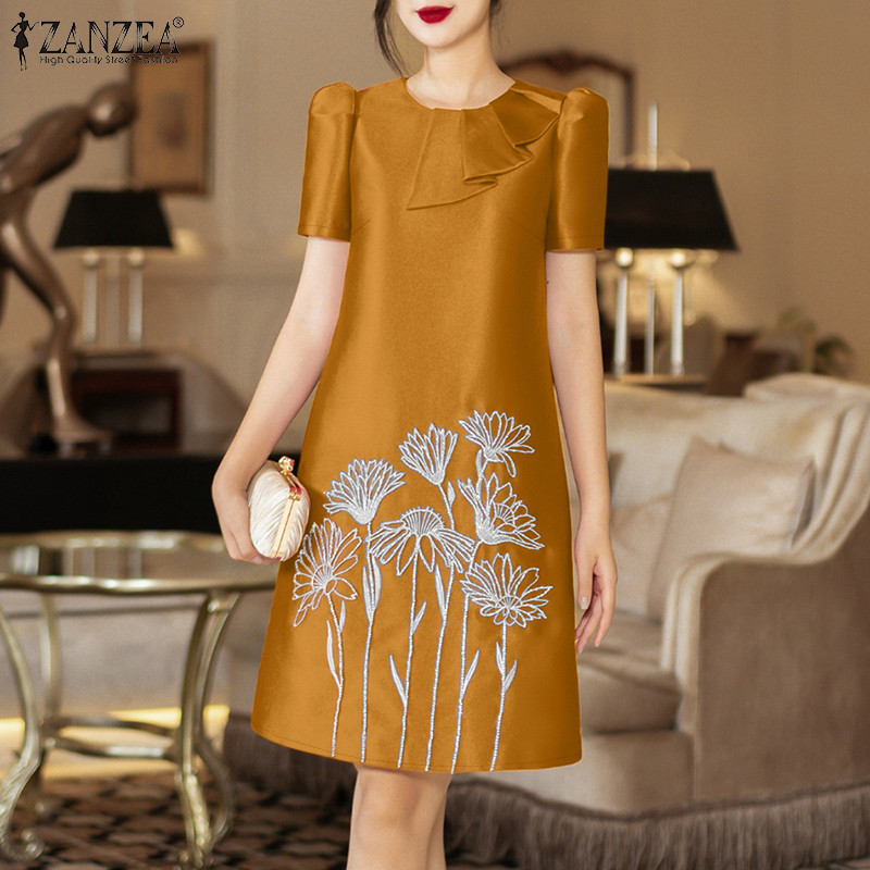 ZANZEA Women's Fashion Embroidery Short Sleeve Ruffle Holiday Dresses