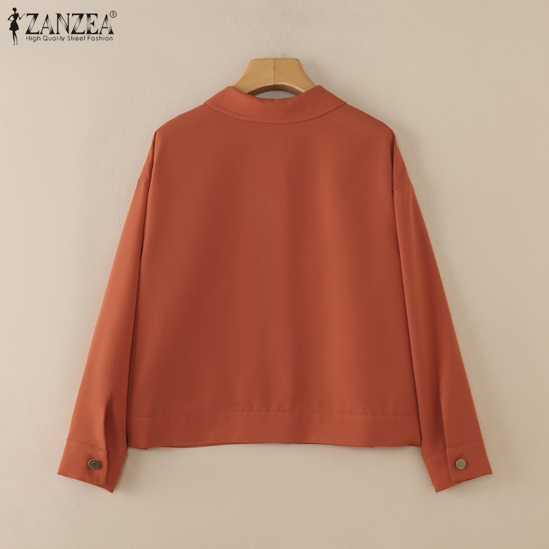 ZANZEA Women Korean Fashion Turn Down Collar Solid Color Long Sleeve Jackets