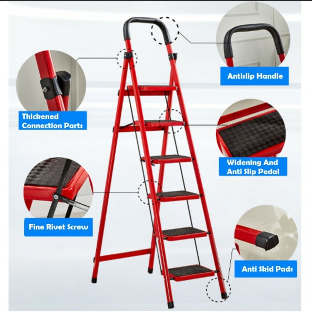 HIGH QUALITY ( 3 - 6 )Steps Tier Folding Ladder Heavy Duty Industrial Lightweight Ladder With Hand Grip