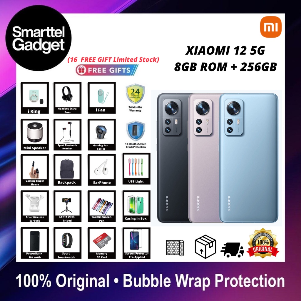 [NEW MYSET] Xiaomi 12 5G (8GB + 256GB) Snapdragon® 8 Gen 1 - Original Malaysia Set - 2 Year Warranty - With Special Gift