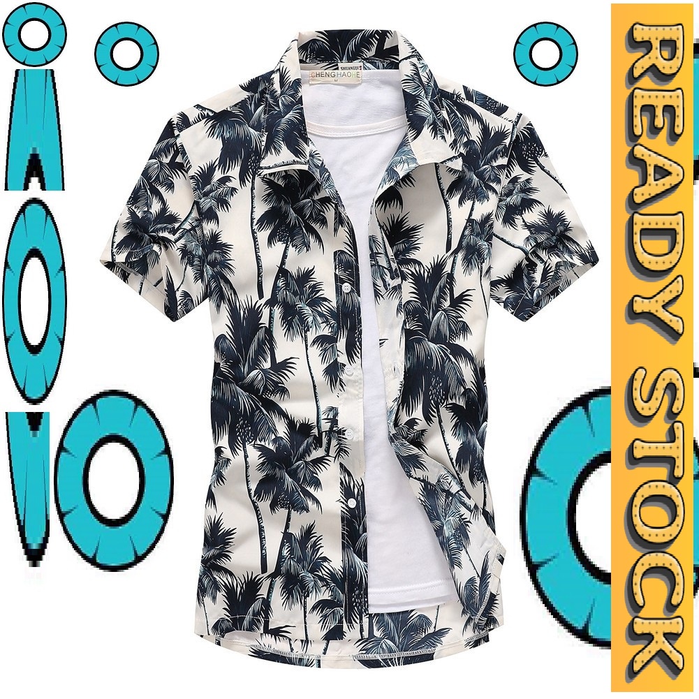 kemeja lelaki baju pokok pantai daun kasual hensem bergaya men shirt topp rr37gh19