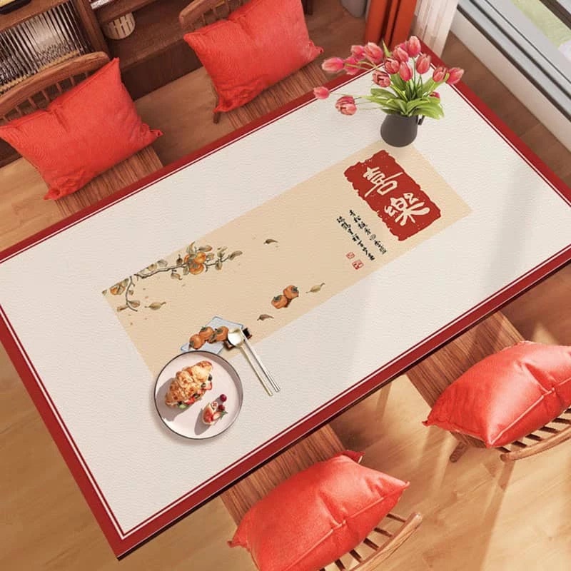CNY 140cmx90cm New Year's Table Mat Festive Waterproof And Oil-proof Washable Tablecloth Coffee Table 新年桌布