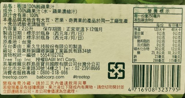 Costco Merchandise-tree top Apple Juice 2 Liters Per Bottle