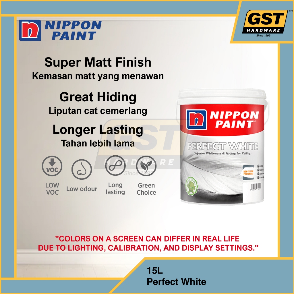 5L / 15L Nippon Paint Perfect White Interior Wall Paint Cat Putih Dinding Cat Rumah 白漆