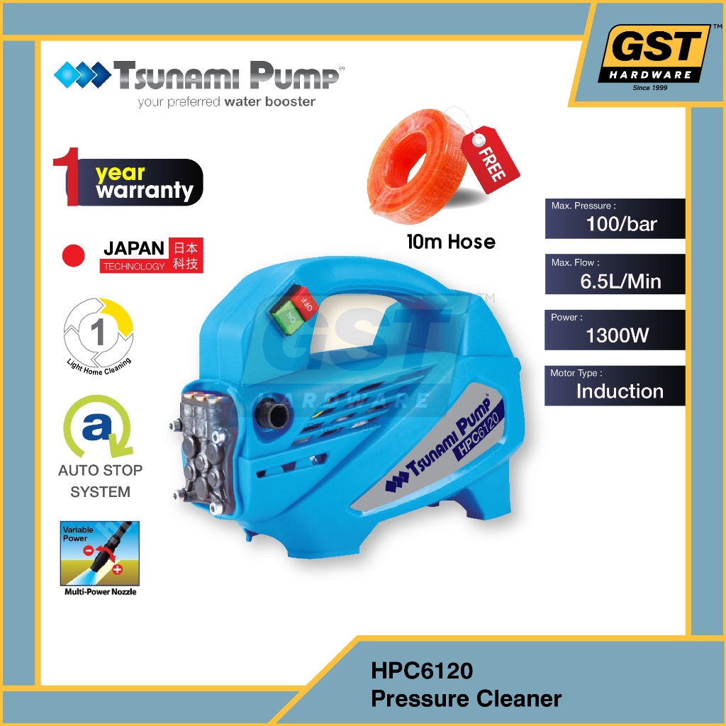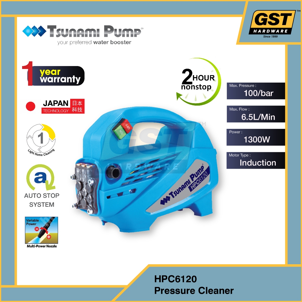 Tsunami HPC6120 1300W 100Bar Induction Motor High Pressure Cleaner Water Jet Washer
