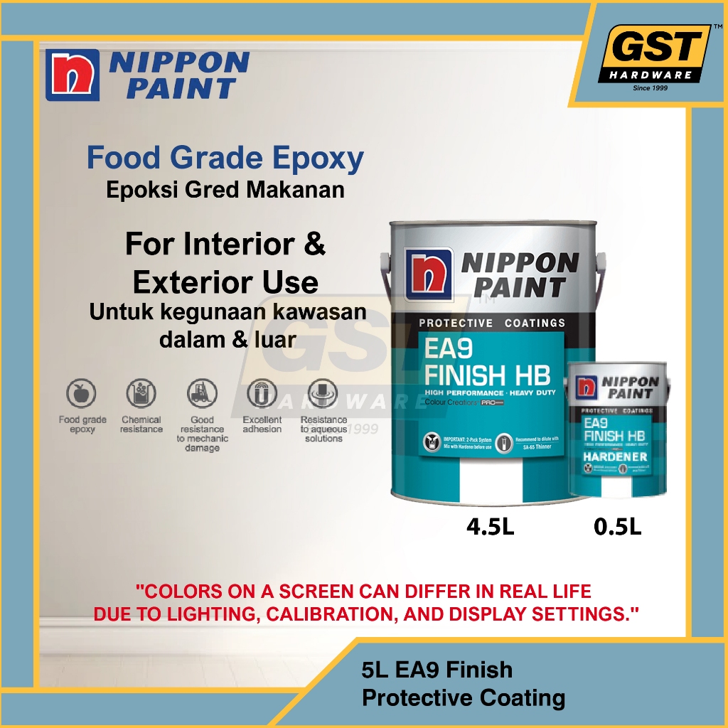 5L Nippon Paint EA9 Epoxy Floor Paint Food Grade Matt Finish c/w Hardener Cat Epoxy untuk Lantai Kolam Ikan