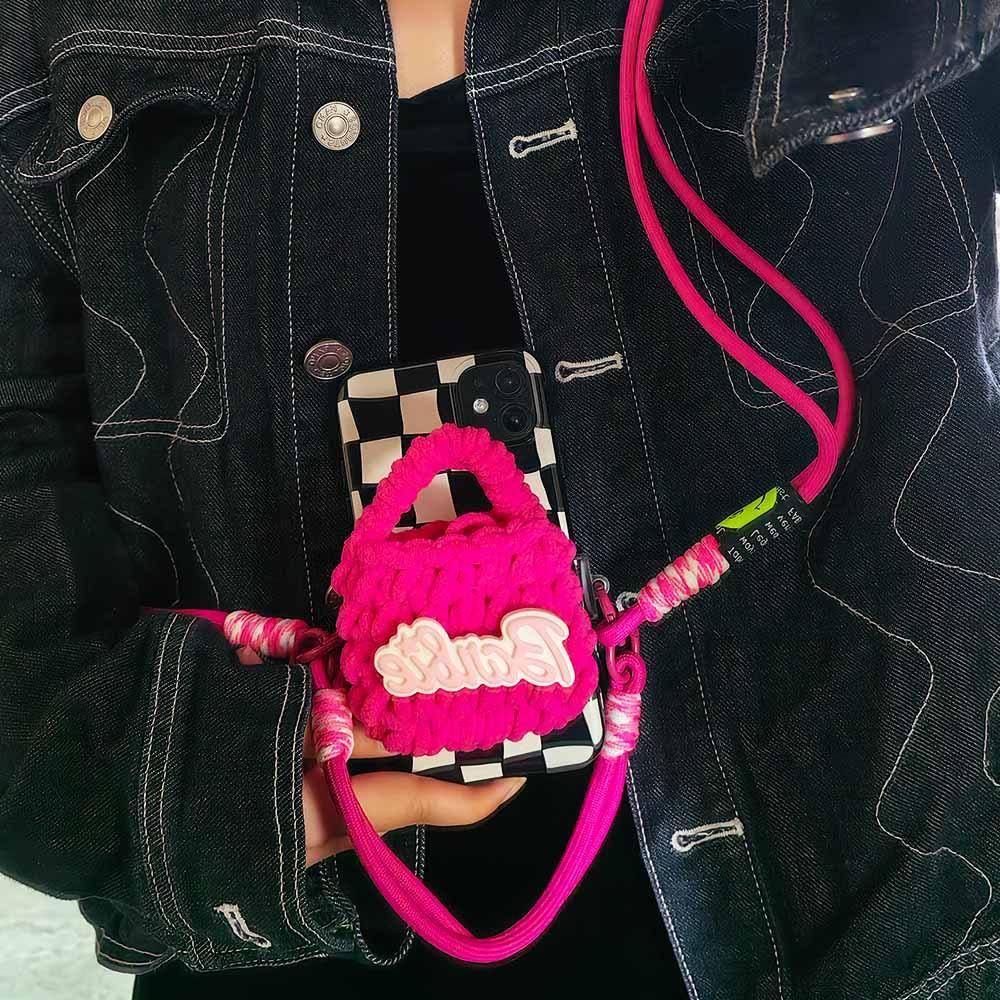 INS Barbie Plush Airpods Bag Phone Case Back Clip With Mobile Phone Lanyard Weave Mobile Phone Strap AT