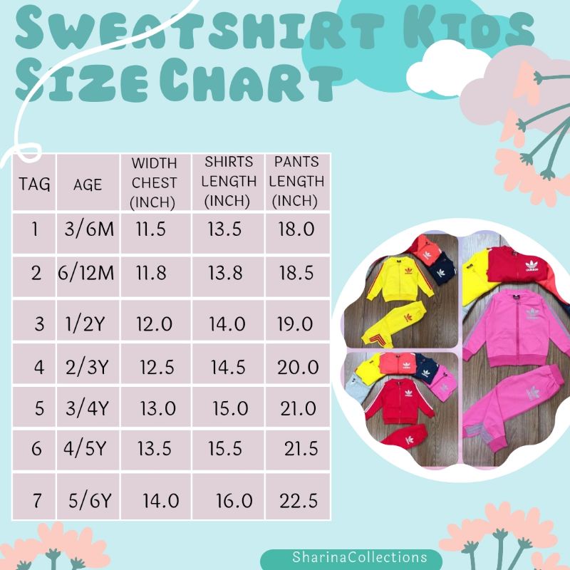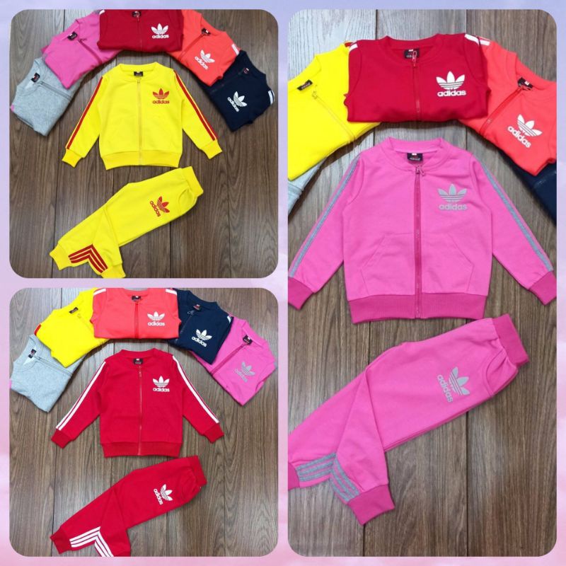 (3m-6y) Ready Stock ADidas Kids Set Sweatshirt Pyjamas Premium Zipper Boy Girl | Baju Sejuk Budak Lelaki Perempuan
