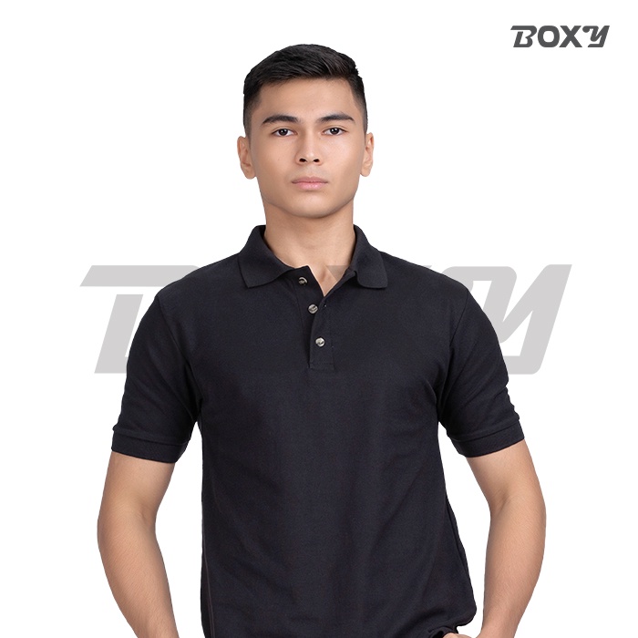 BOXY Men Cotton Round Neck Plain Black/White/Maroon/Navy/Forest Green S-3XL Polo T-Shirt | Baju Kemeja Berkolar Lelaki