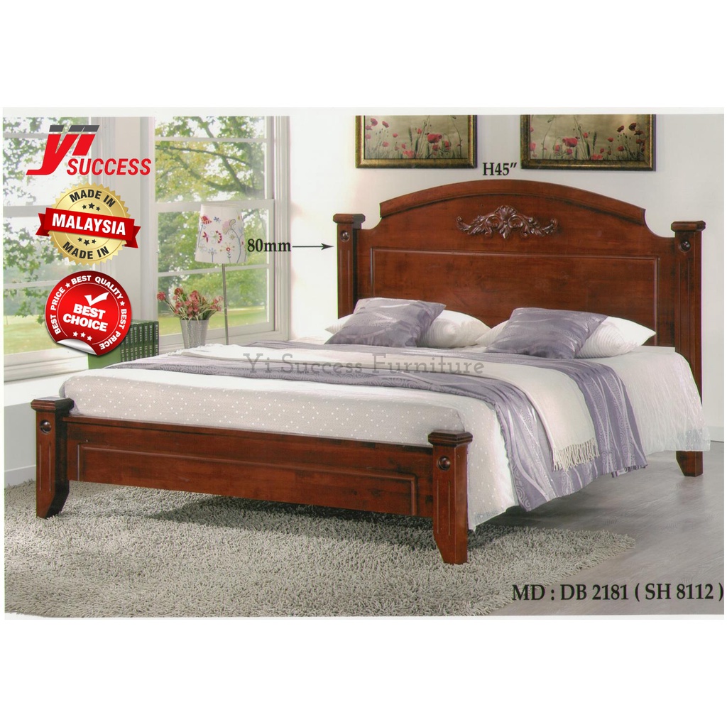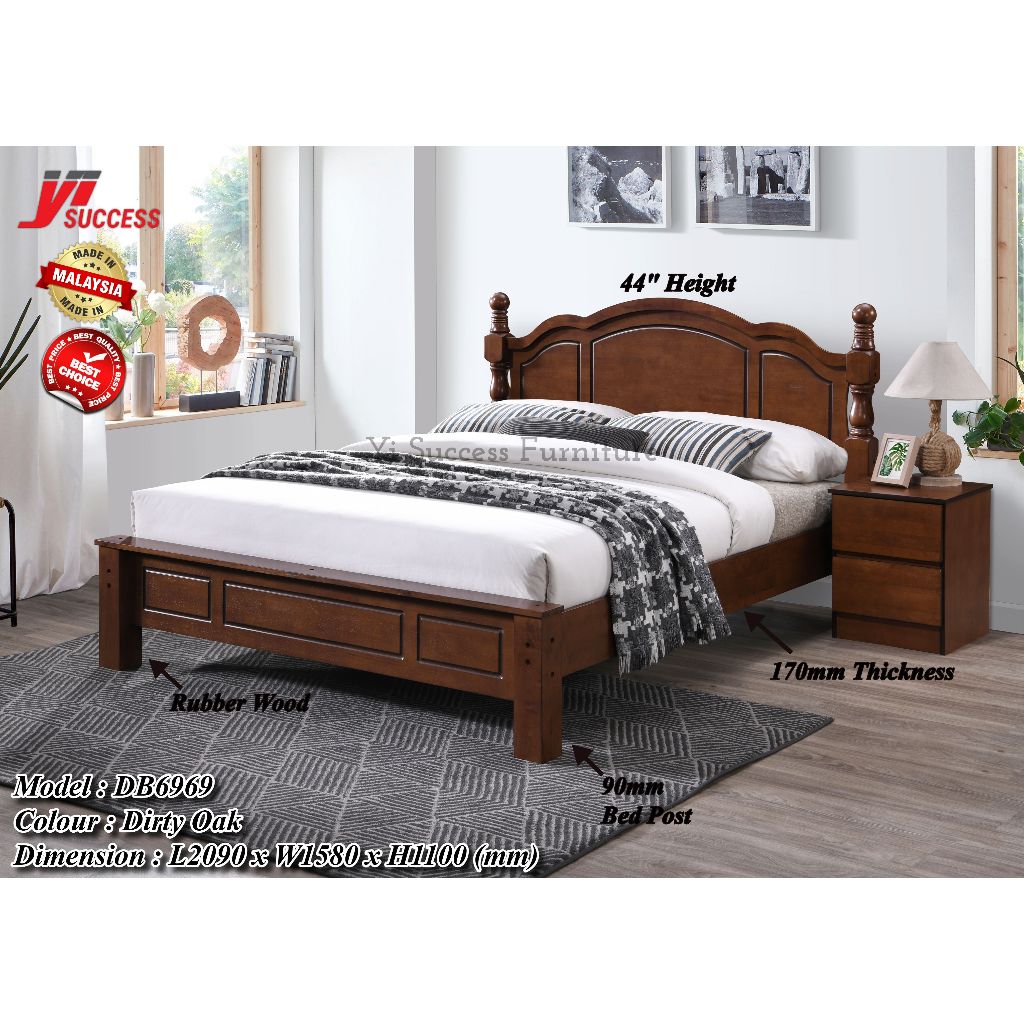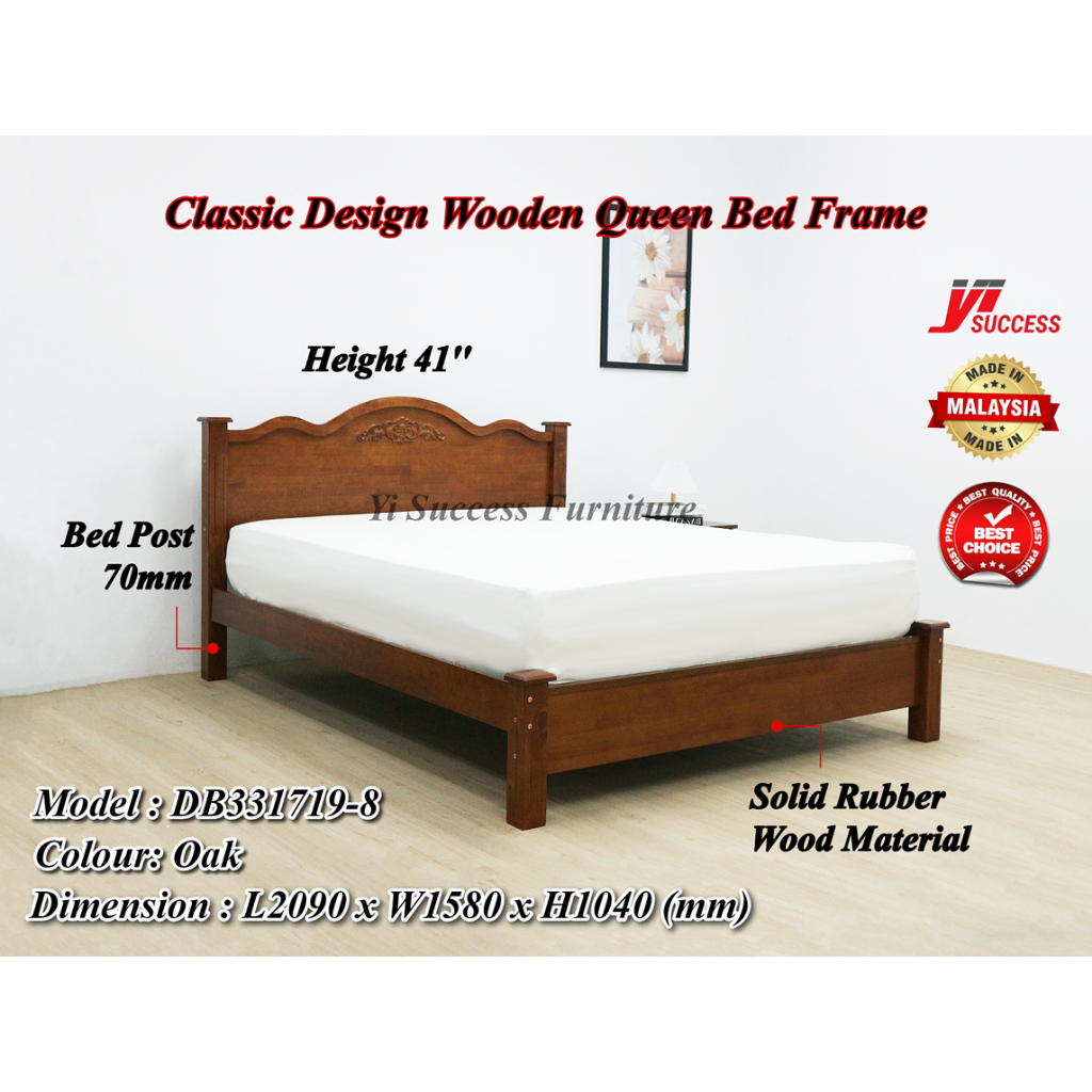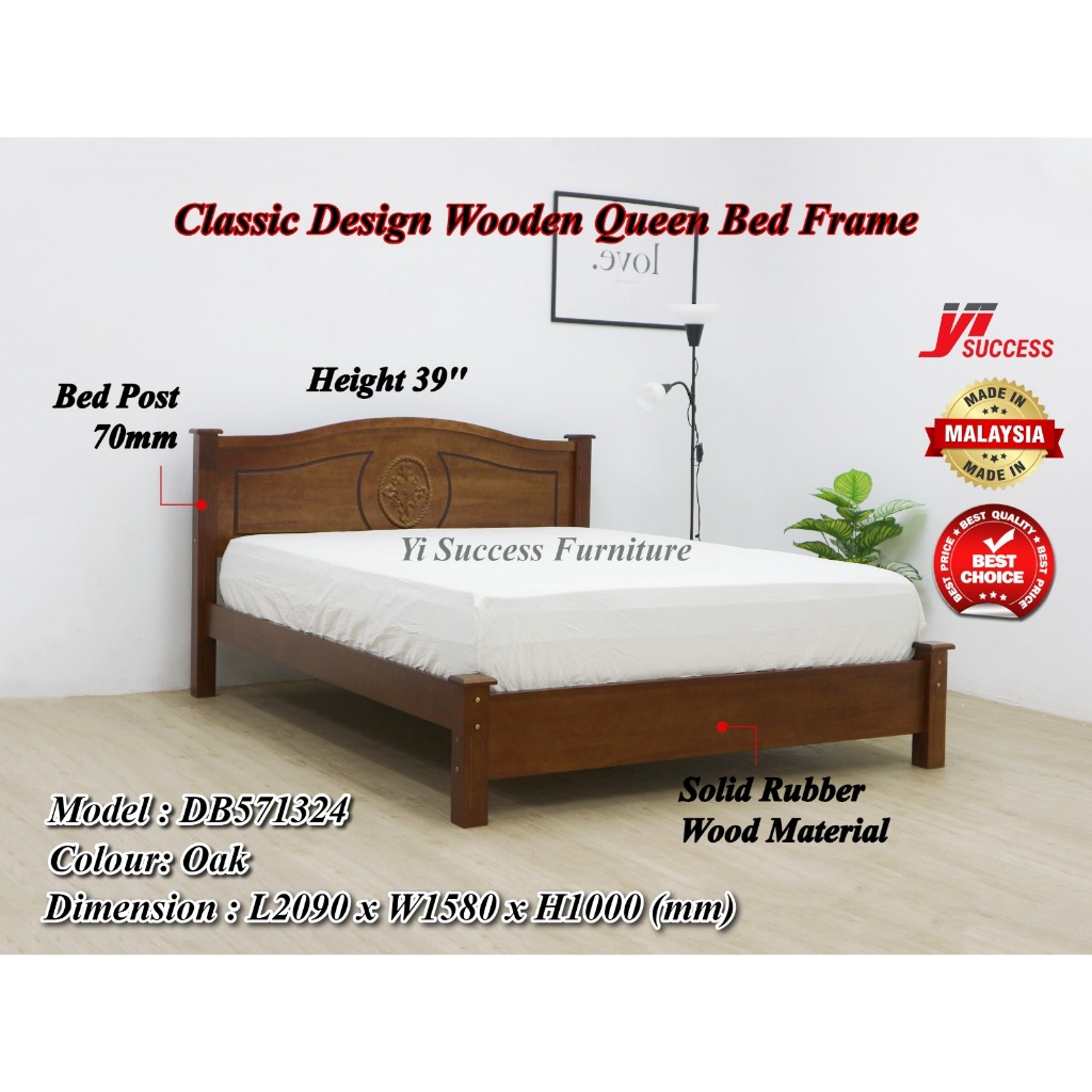 Yi Success Maple Wooden Queen Bed Frame / Quality Queen Bed / Katil Queen Kayu / Wooden Double Bed / Bedroom Furniture